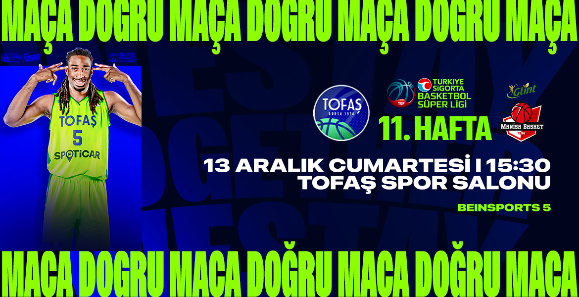 Tofaş Basketbol Takımımız, Türkiye Sigorta Basketbol Süper Ligi 11. haftasında evinde Glint Manisa Basket ile karşı karşıya gelecek. 13 Aralık Cumartesi günü TOFAŞ Spor Salonu’nda oynanacak maç saat 15.30’da başlayacak.