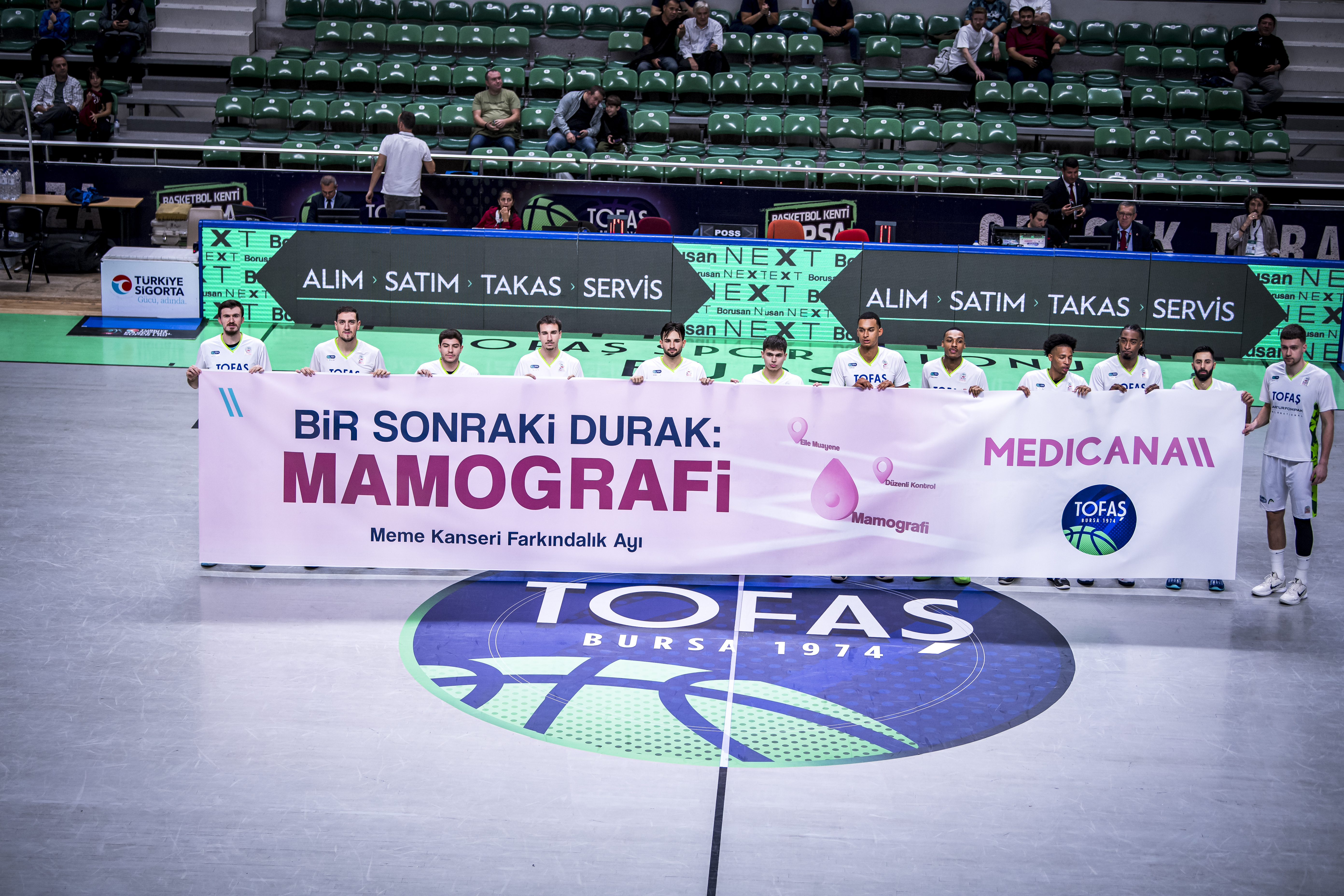 Tofaş Basketbol Takımı, Onvo Büyükçekmece Basketbol maçı öncesi parkeye “Bir sonraki durak: Mamografi” pankartıyla çıktı. Meme kanseri farkındalık ayı kapsamında kulübün sağlık sponsoru Medicana Bursa Hastanesi ile birlikte meme kanserinde erken teşhisin önemine dikkat çekmek amacıyla gerçekleştirilen proje kapsamında hafta içerisinde Medicana Bursa Hastanesi önünde pembe balonlar gökyüzüne bırakılarak erken tanının hayati önemine vurgu yapılmıştı.