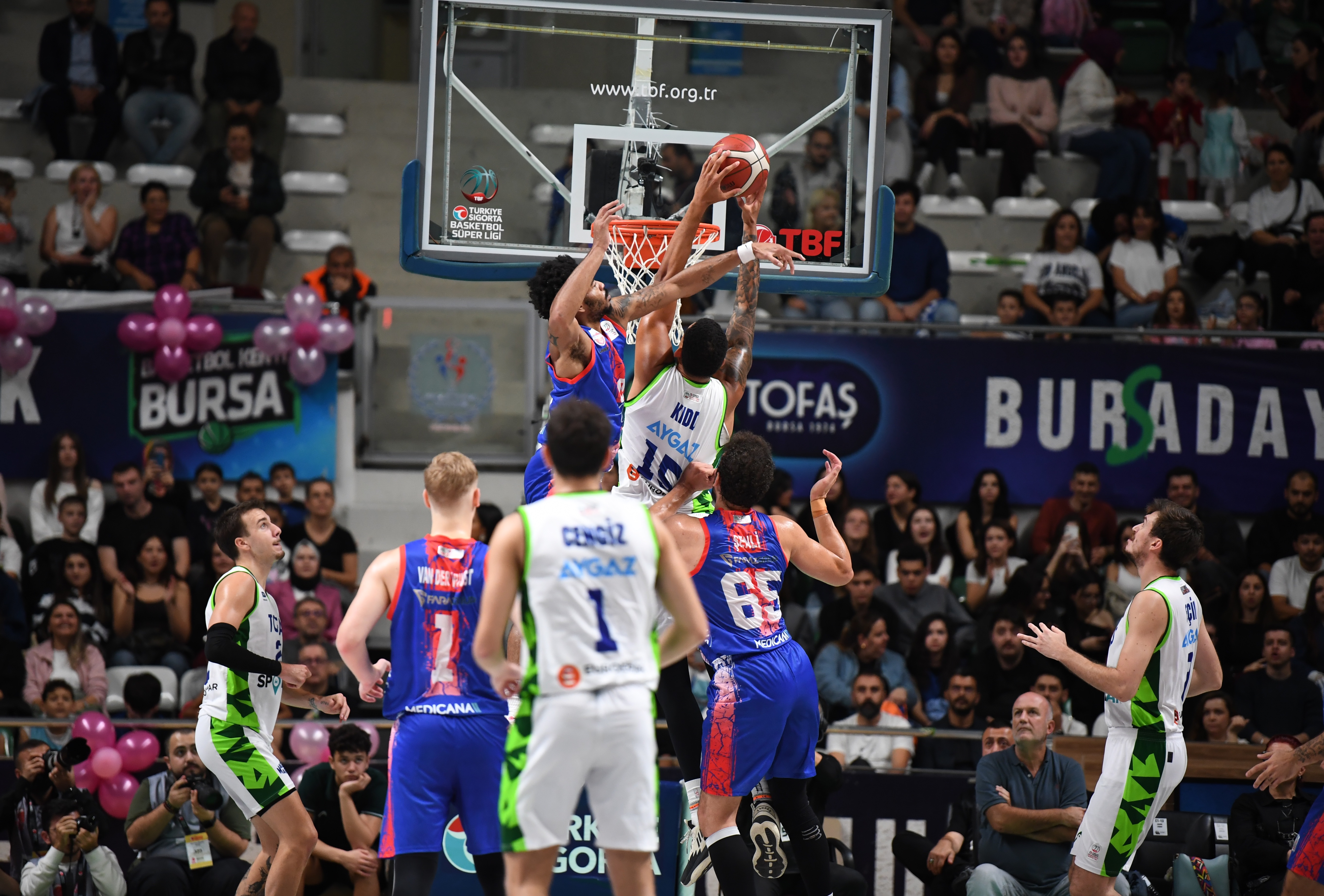 Türkiye Sigorta Basketbol Süper Ligi 5. hafta karşılaşmasında TOFAŞ, sahasında Onvo Büyükçekmece Basketbol’u ağırladı. Nilüfer TOFAŞ Spor Salonu’nda oynanan maça Alex Perez, Joe Thomasson, Maxwell Lewis, Yiğitcan Saybir, Marek Blazevic beşiyle başlayan Mavi Yeşilliler, ilk basketlerini Yiğitcan Saybir’in serbest atış sayılarıyla buldu. Marek Blazevic, Joe Thomasson ve Yiğitcan’ın sayılarıyla 5. dakikada televizyon molasına 8-5 önde giren Bursa ekibi, mola dönüşü Alex Perez’in üçlüğü ve Yiğitcan’ın orta mesafeli basketiyle farkı 8’e çıkardı: 13-5. Hugo Besson ve Marek Blazevic ile sayılar bulmaya devam eden ev sahibi takım, Özgür Cengiz’in son saniye basketiyle ilk çeyreği 22-15 önde kapattı.