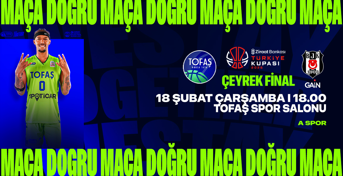 TOFAŞ Basketbol Takımımız, Ziraat Bankası Türkiye Kupası çeyrek final maçında sahasında Beşiktaş GAİN’i ağırlayacak. Mavi Yeşilliler örtlü Final’e adını yazdırmak isterken, 18 Şubat Çarşamba günü oynanacak maç saat 18.00'de başlayacak.