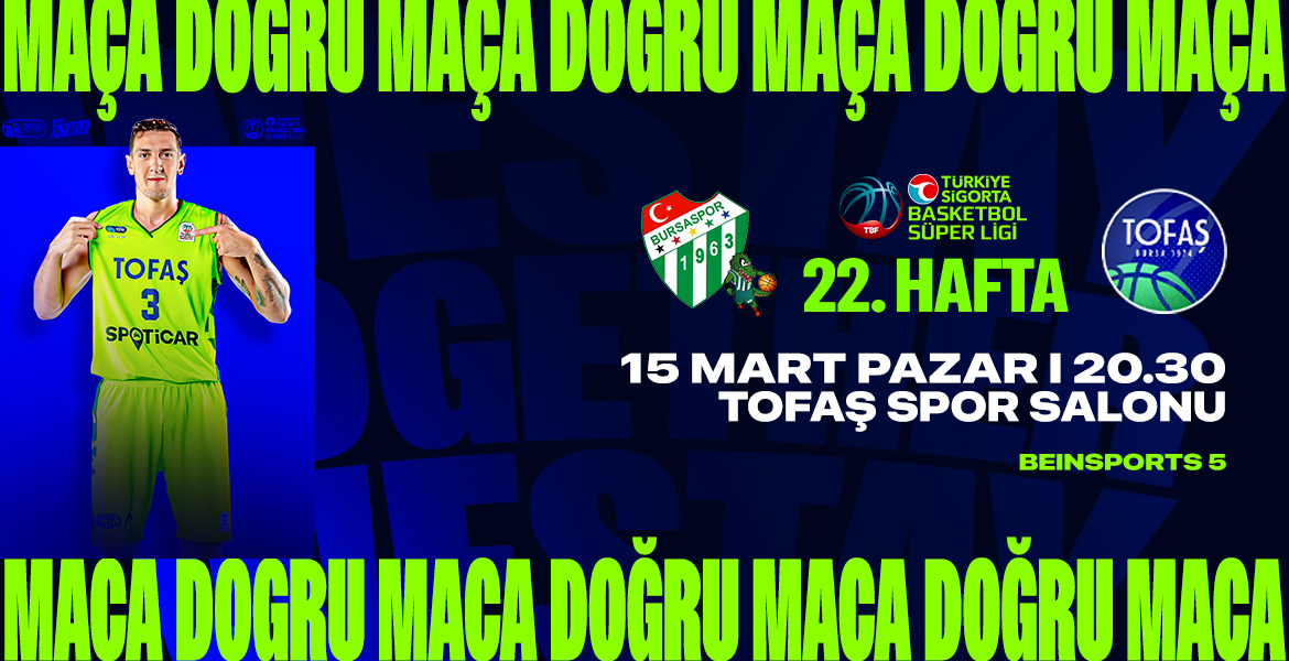 TOFAŞ Basketbol Takımımız, Türkiye Sigorta Basketbol Süper Ligi 19. haftasında sahasında Mersin Spor Kulübü’nü ağırlayacak. 7 Şubat Cumartesi günü TOFAŞ Spor Salonu’nda oynanacak maç saat 13.00’de başlayacak.