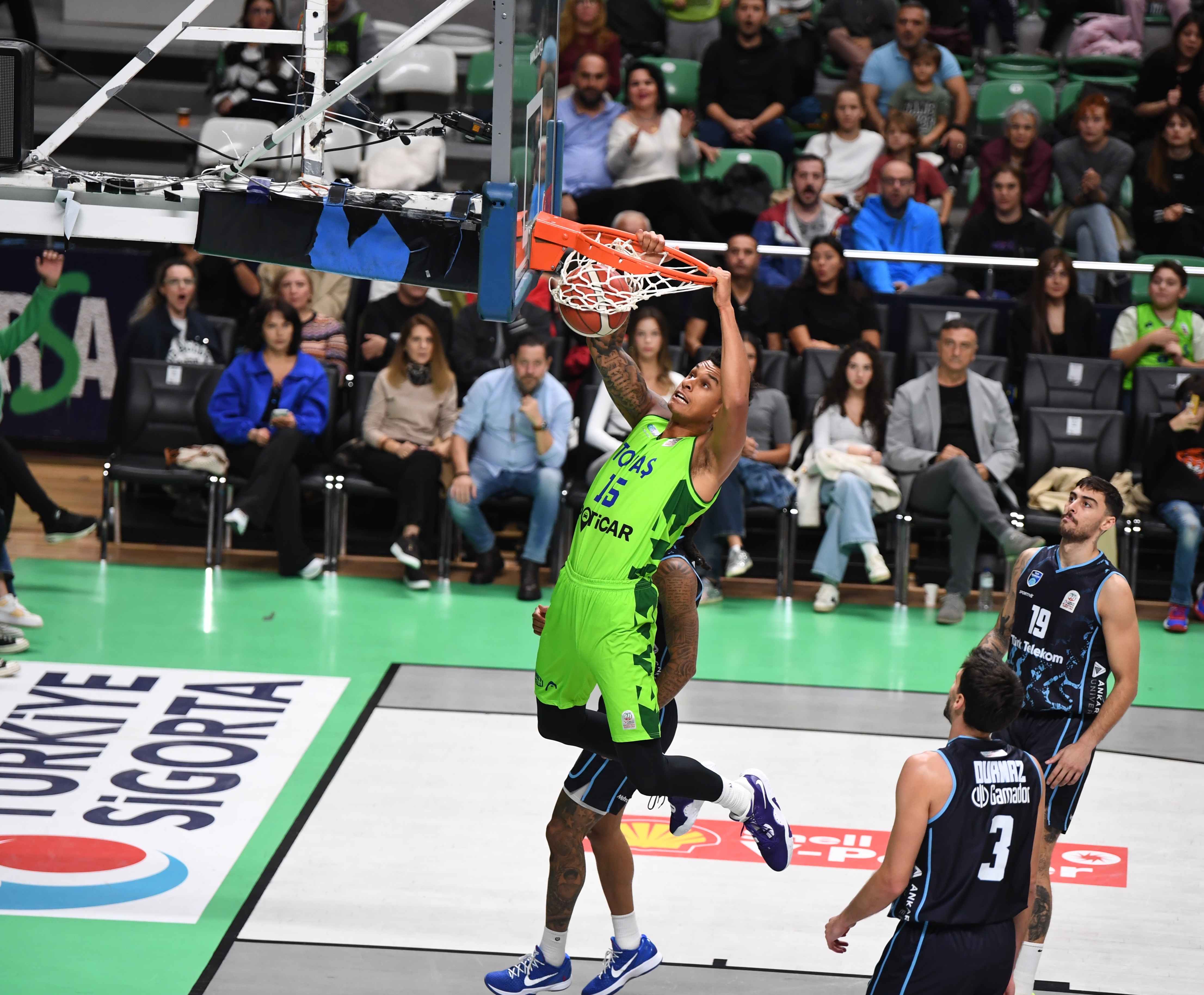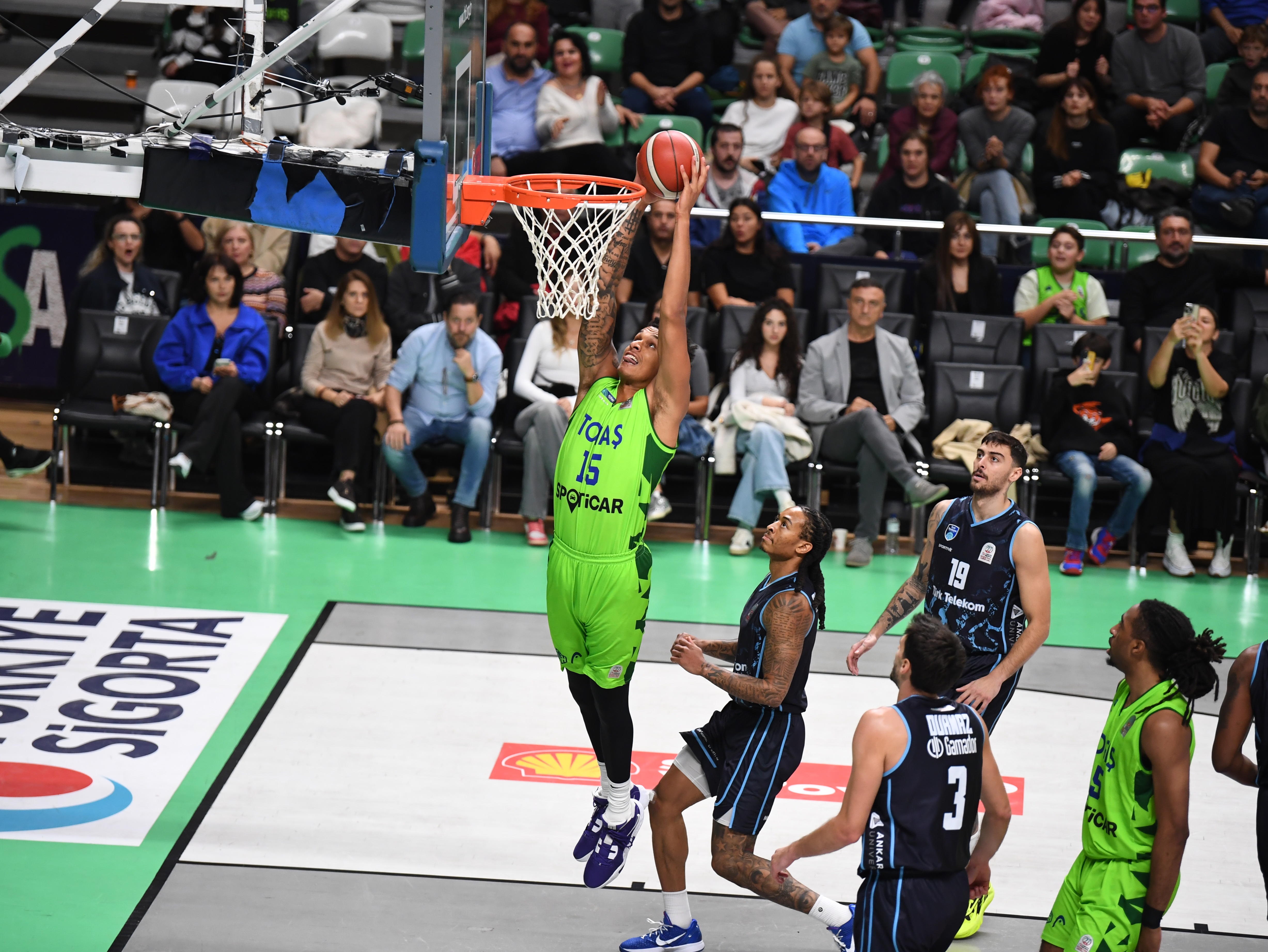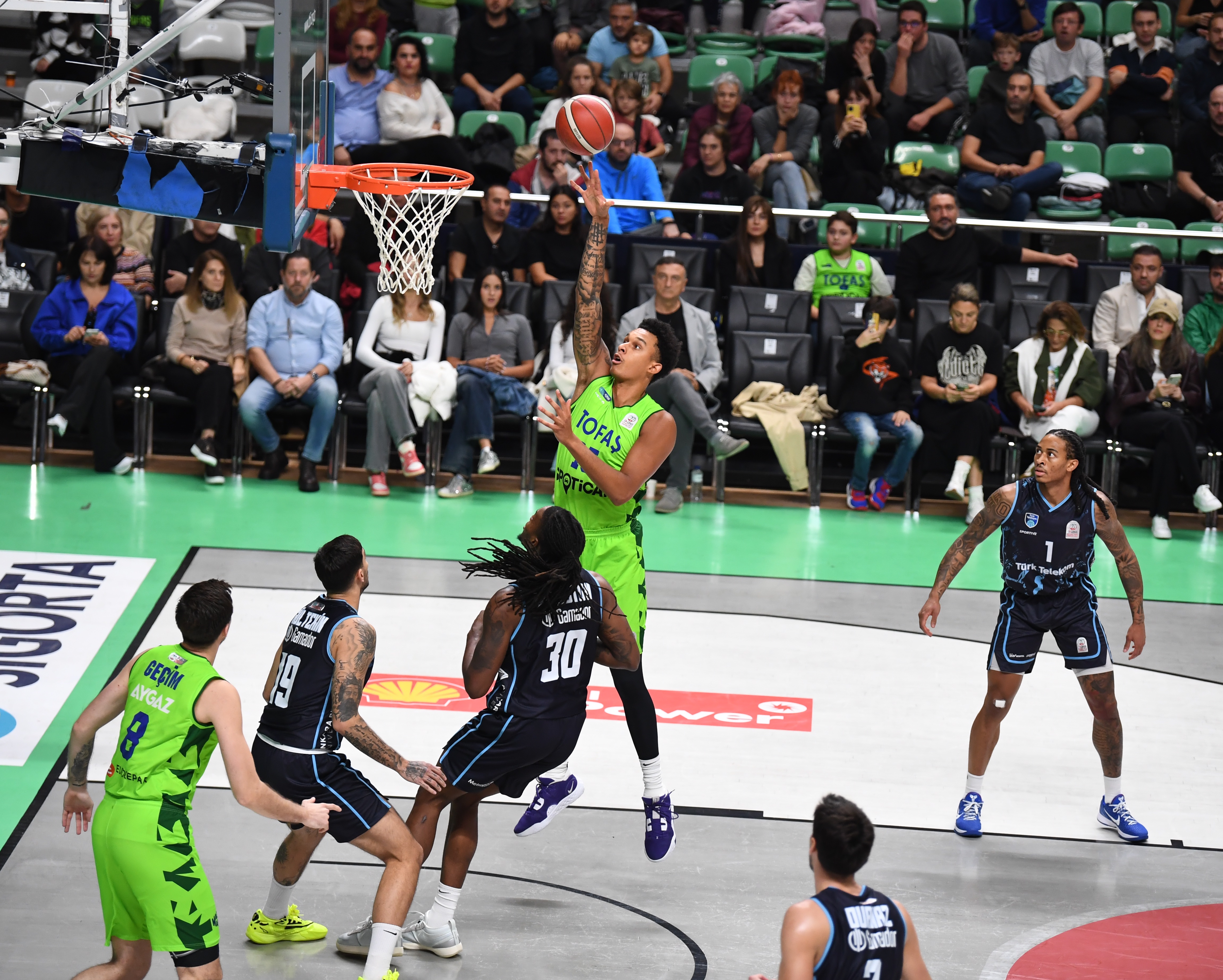 Türkiye Sigorta Basketbol Süper Ligi 3. hafta mücadelesinde takımımız TOFAŞ sahasında Türk Telekom ile karşı karşıya geldi. Nilüfer TOFAŞ Spor Salonu’nda oynanan maça Alex Perez, Joe Thomasson, Maxwell Lewis, Yiğitcan Saybir, Marek Blazevic beşiyle başlayan Mavi Yeşilliler, ilk basketini Marek Blazevic ile buldu. Blazevic, Yiğitcan Saybir ve Joe Thomasson’ın sayılarıyla 4. dakikada televizyon molasına 13-4 önde girdi. Mola dönüşü Blazevic ve Maxwell Lewis’in basketleri farkı 14’e (18-4) çıkarırken, Lynn Kidd’in skor katkısıyla ilk periyot 26-12 sonuçlandı.