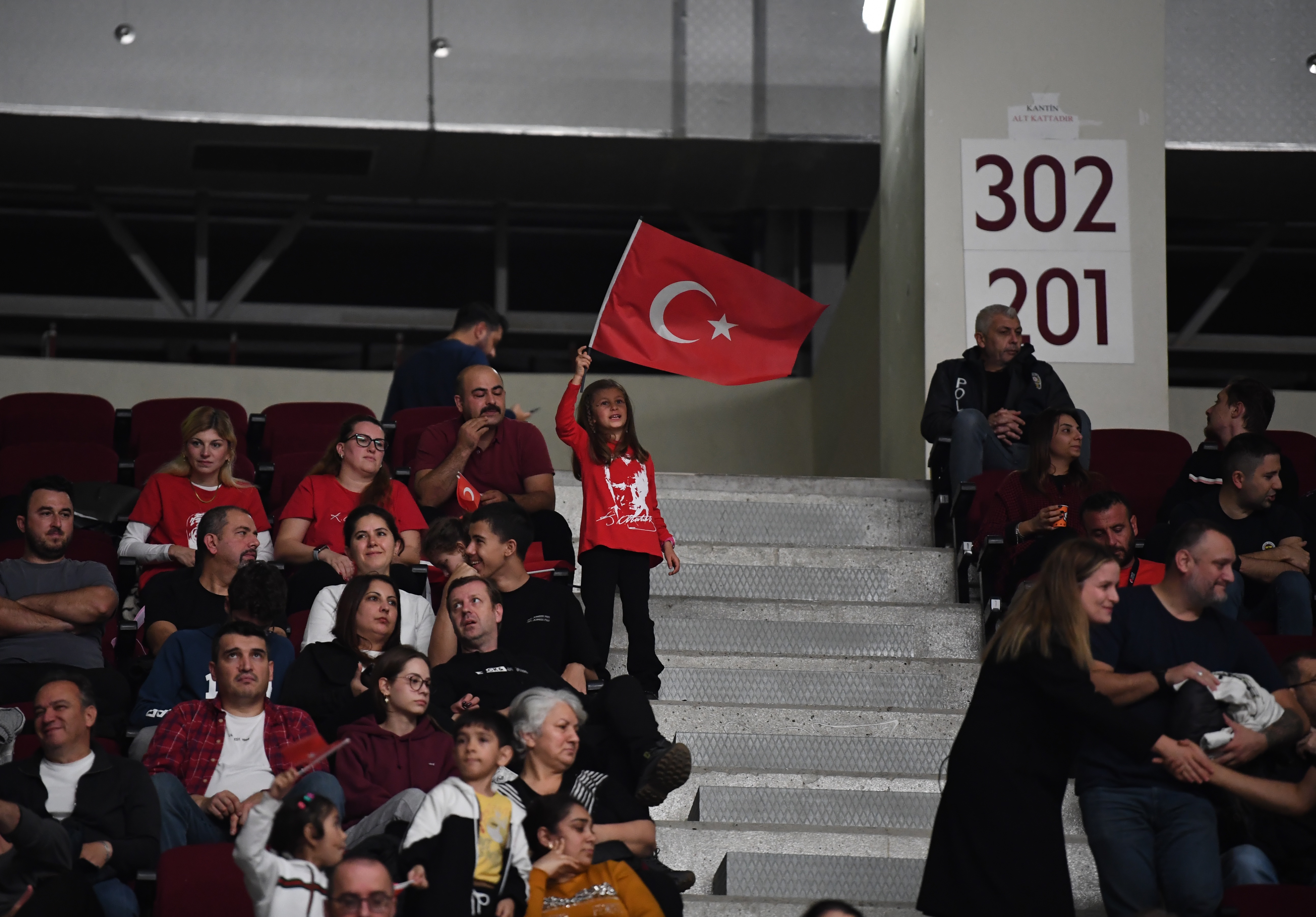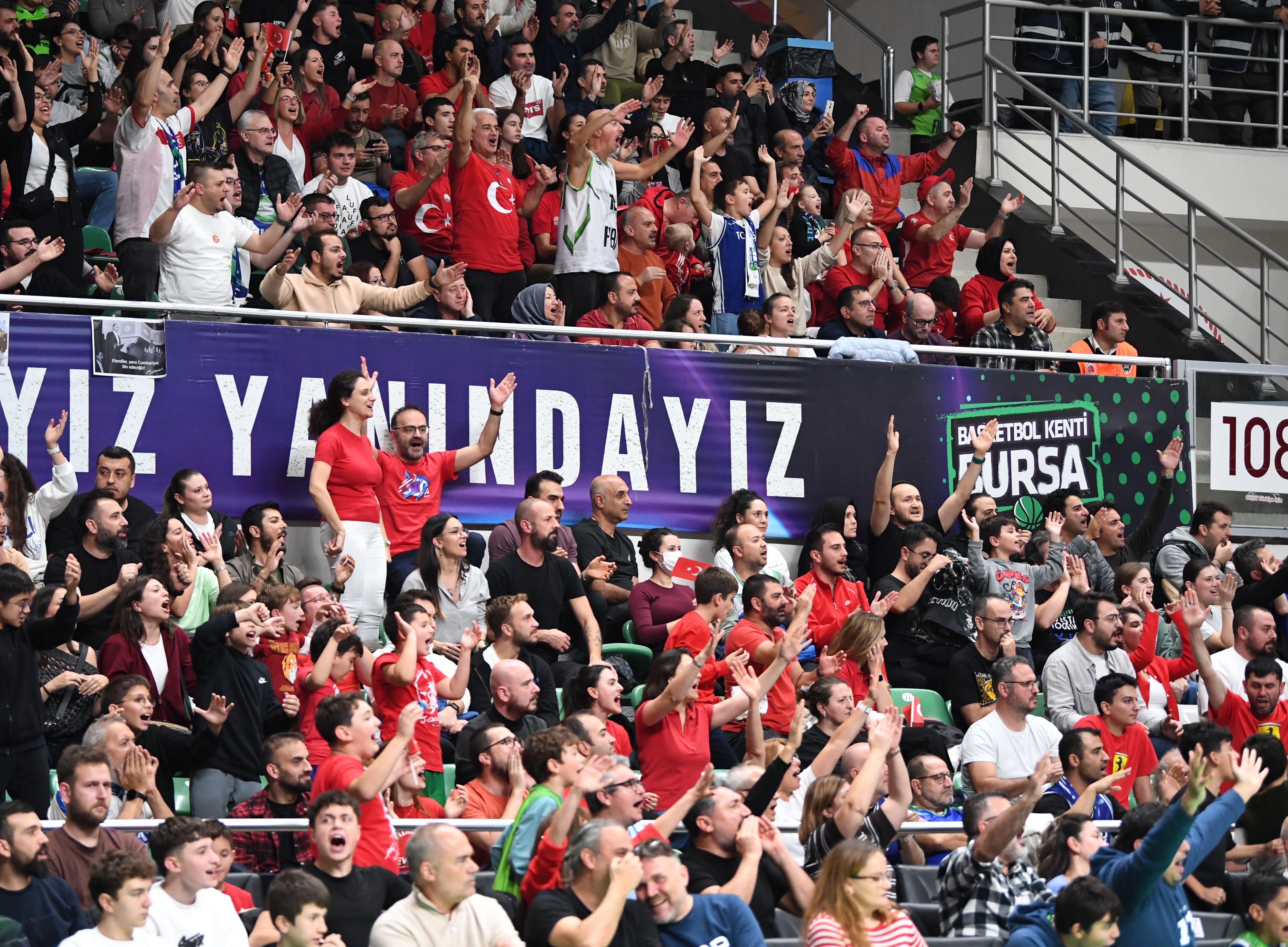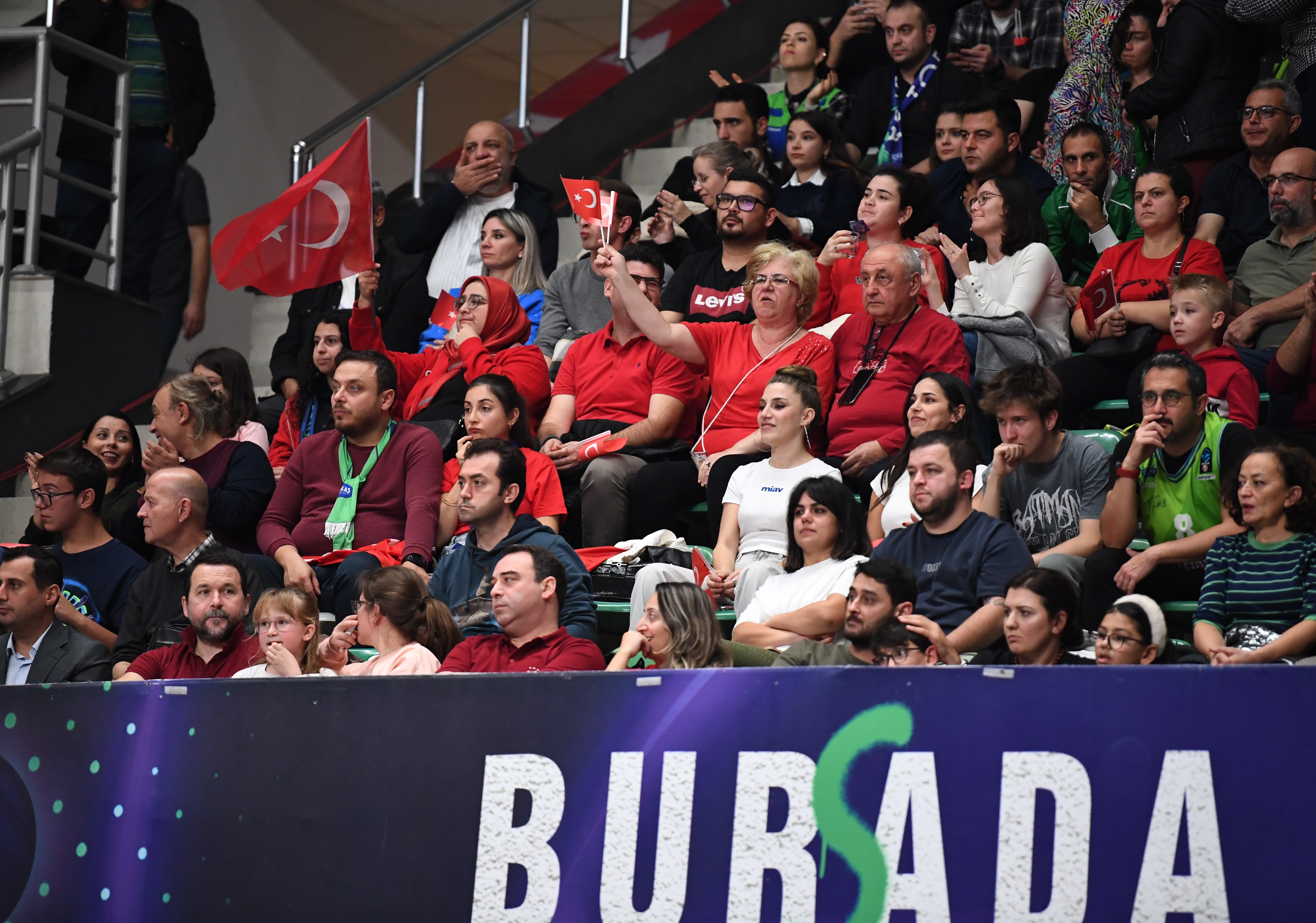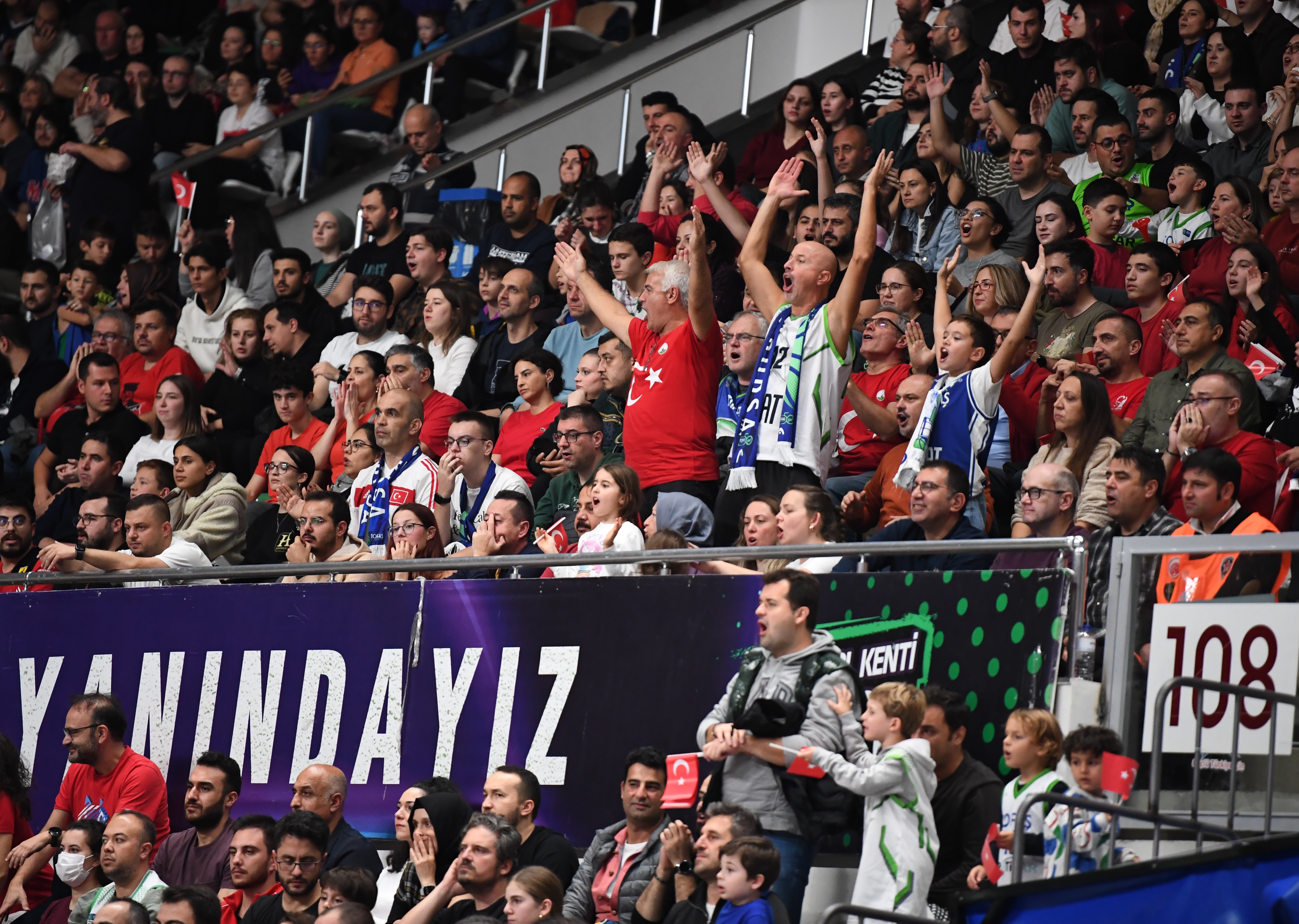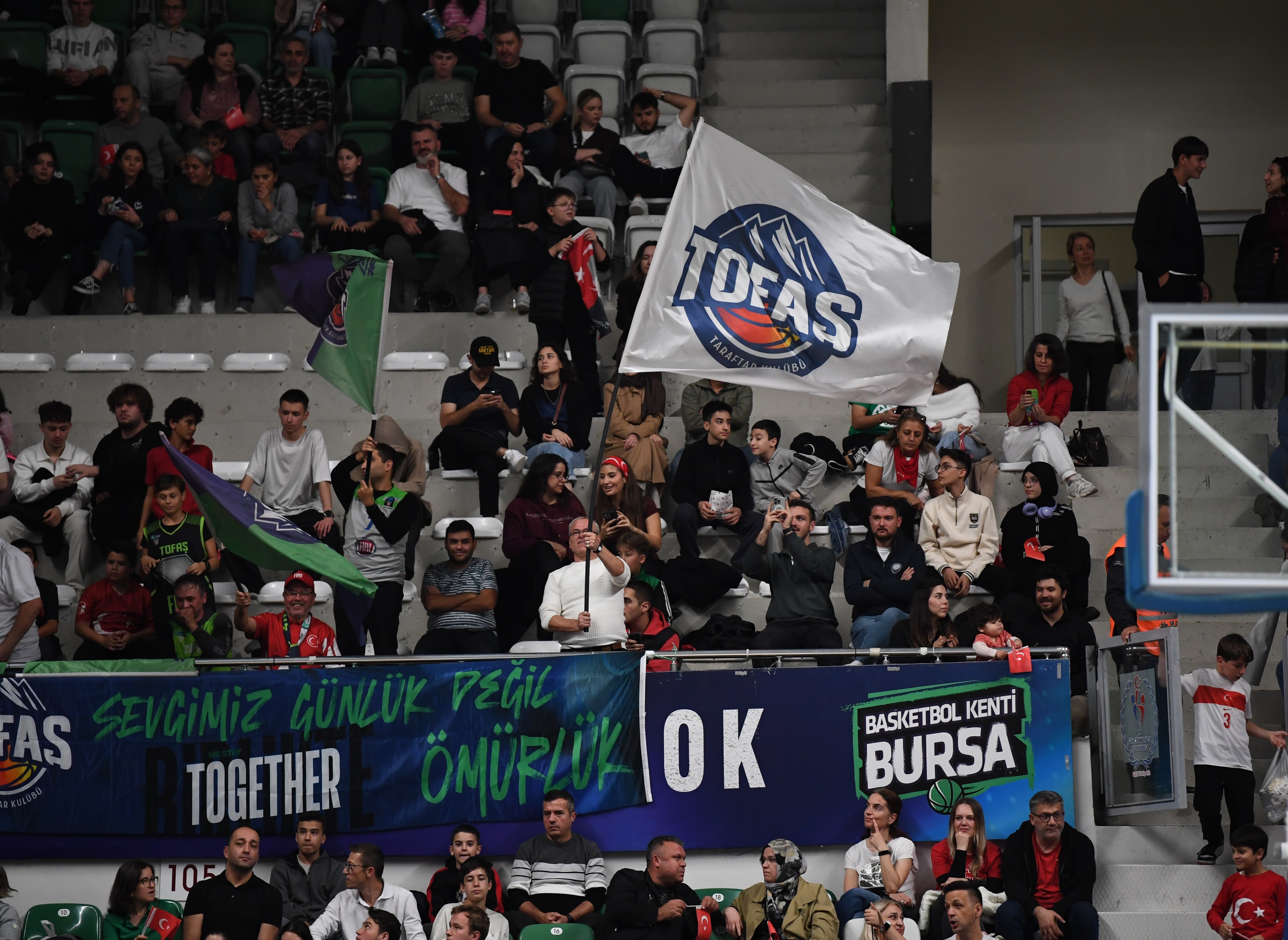 TOFAŞ – La Laguna Tenerife karşılaşması aynı zamanda Cumhuriyetimizin kuruluşunun 102. yıl dönümü kutlama etkinliklerine sahip oldu. 29 Ekim Cumhuriyet Bayramı öncesinde Tofaş Spor Salonu Ay Yıldızlı Bayraklarımızla süslenirken, Bursalı basketbol severler de giydikleri kıyafetlerle tribünleri Türk Bayrağı renklerine boyadı. “Ne mutlu Türküm diyene” pankartı açan taraftarlar, karşılaşma boyunca bando eşliğinde milli marşları hep bir ağızdan söyledi.