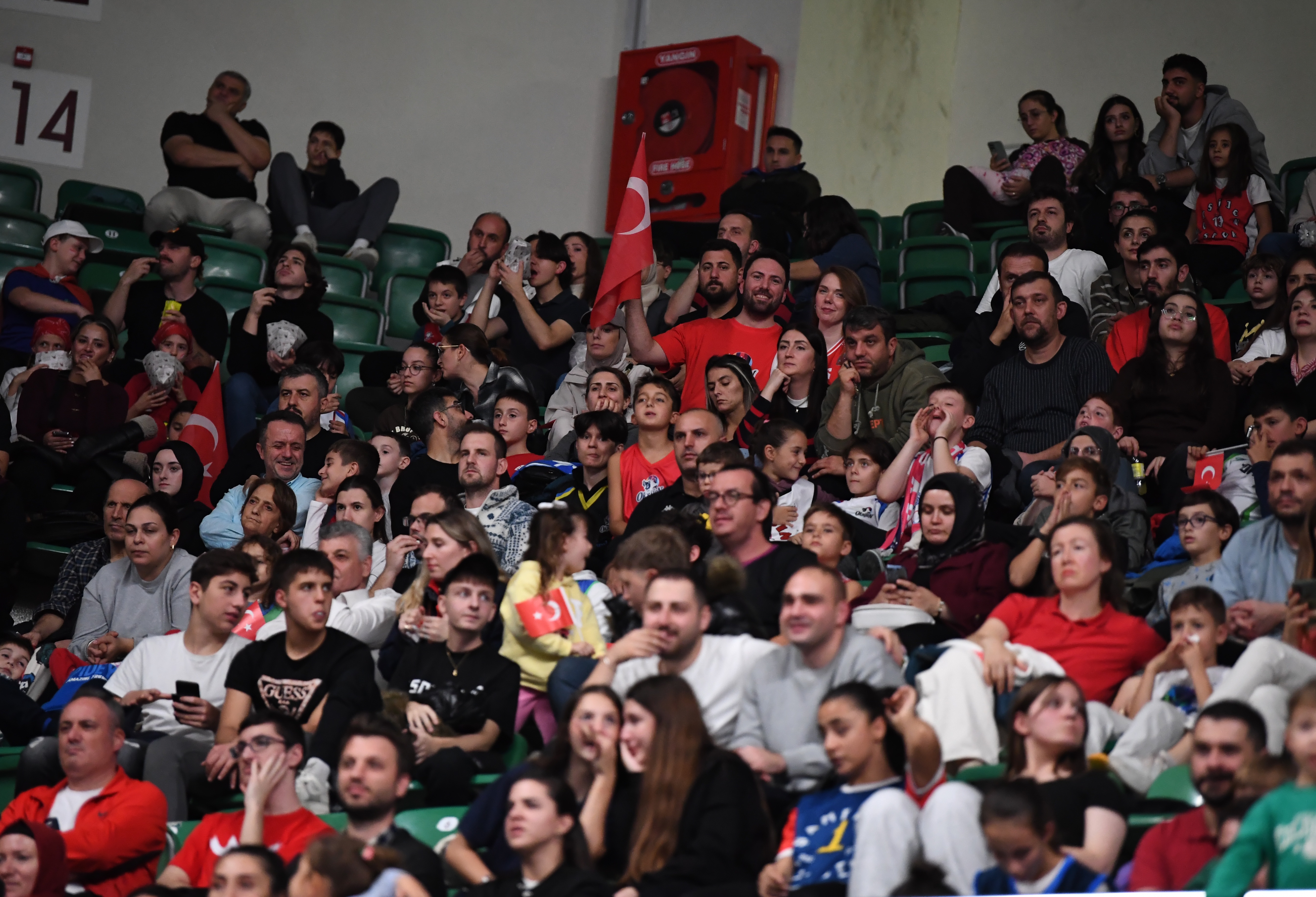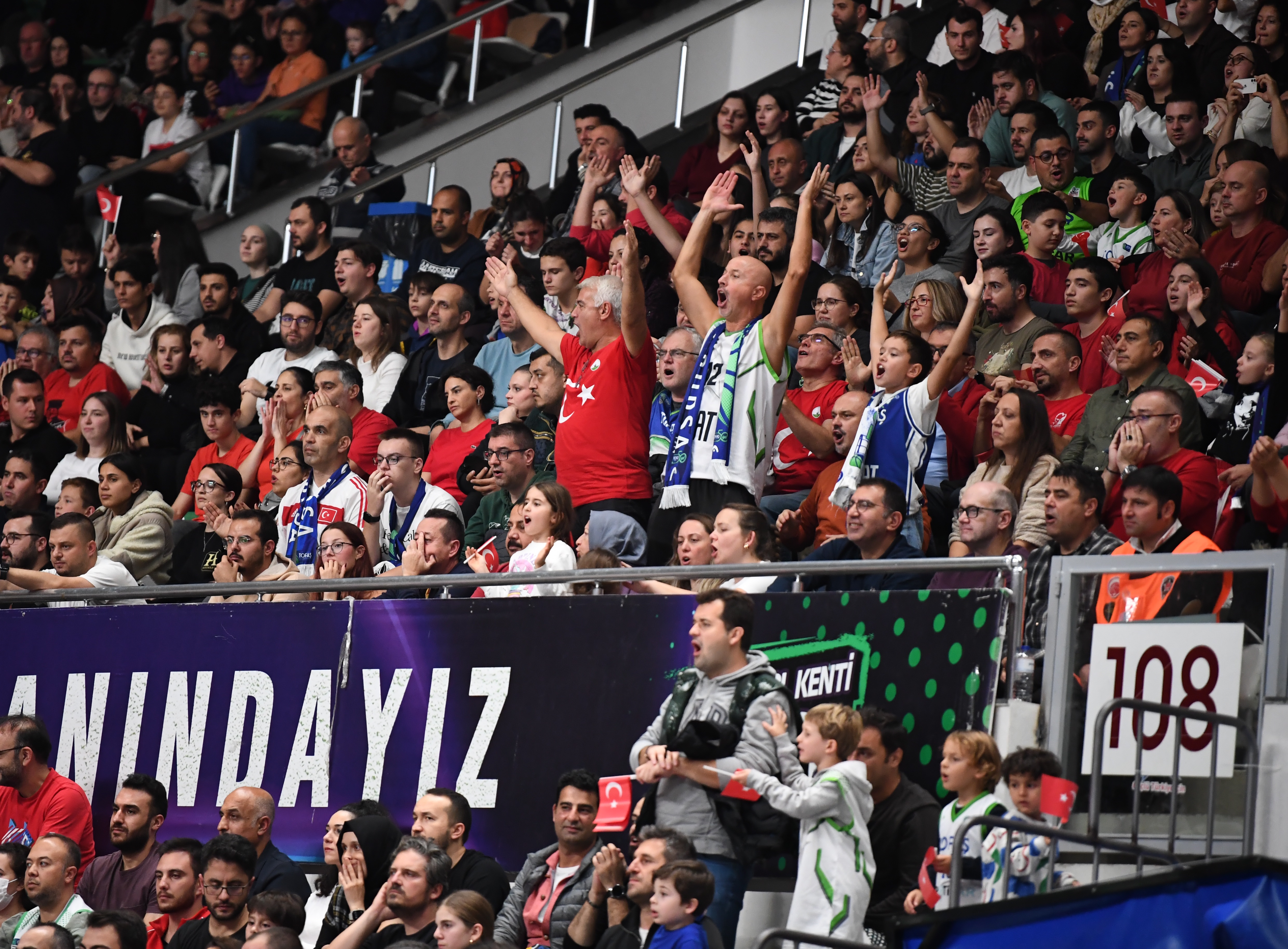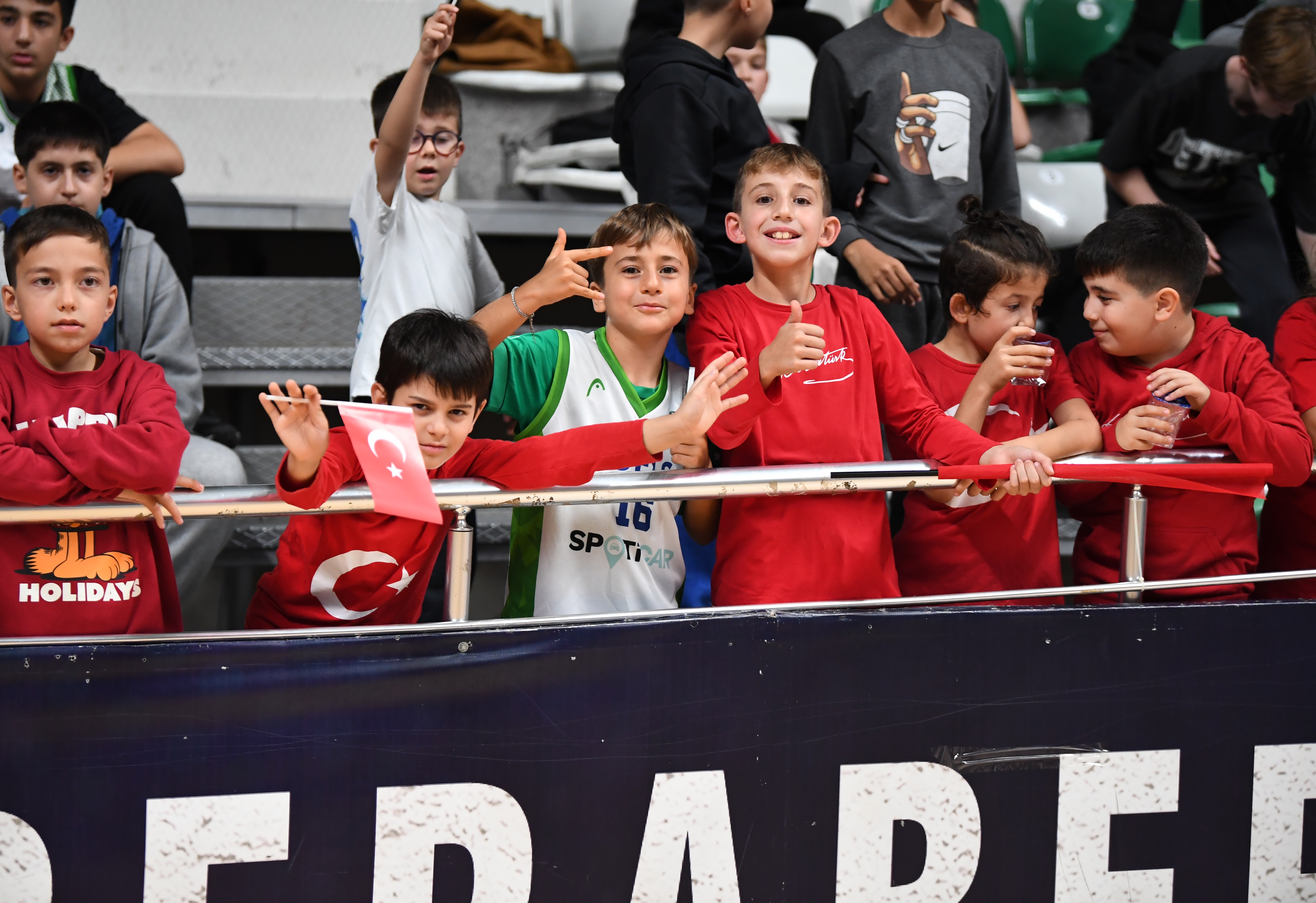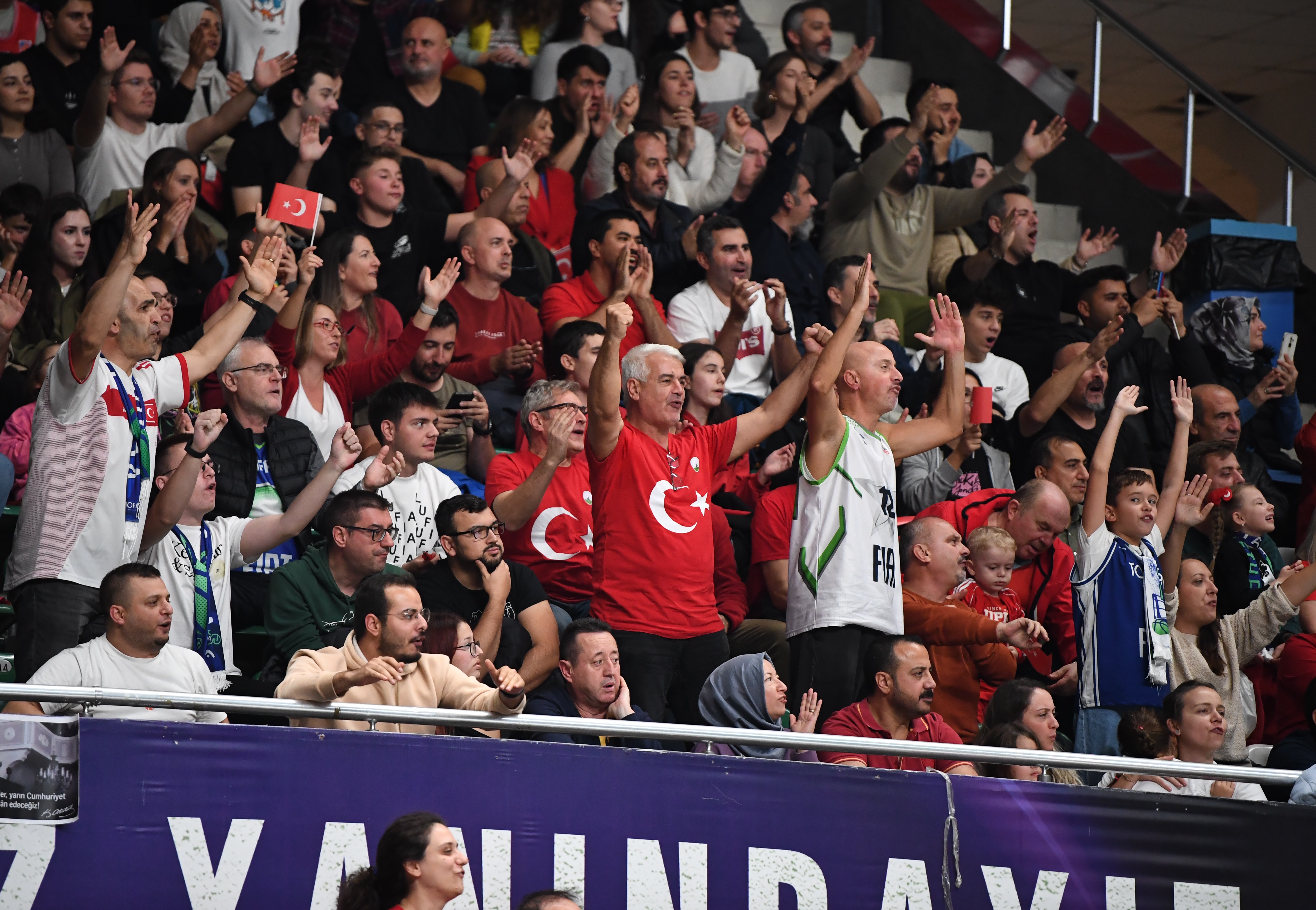 TOFAŞ – La Laguna Tenerife karşılaşması aynı zamanda Cumhuriyetimizin kuruluşunun 102. yıl dönümü kutlama etkinliklerine sahip oldu. 29 Ekim Cumhuriyet Bayramı öncesinde Tofaş Spor Salonu Ay Yıldızlı Bayraklarımızla süslenirken, Bursalı basketbol severler de giydikleri kıyafetlerle tribünleri Türk Bayrağı renklerine boyadı. “Ne mutlu Türküm diyene” pankartı açan taraftarlar, karşılaşma boyunca bando eşliğinde milli marşları hep bir ağızdan söyledi.