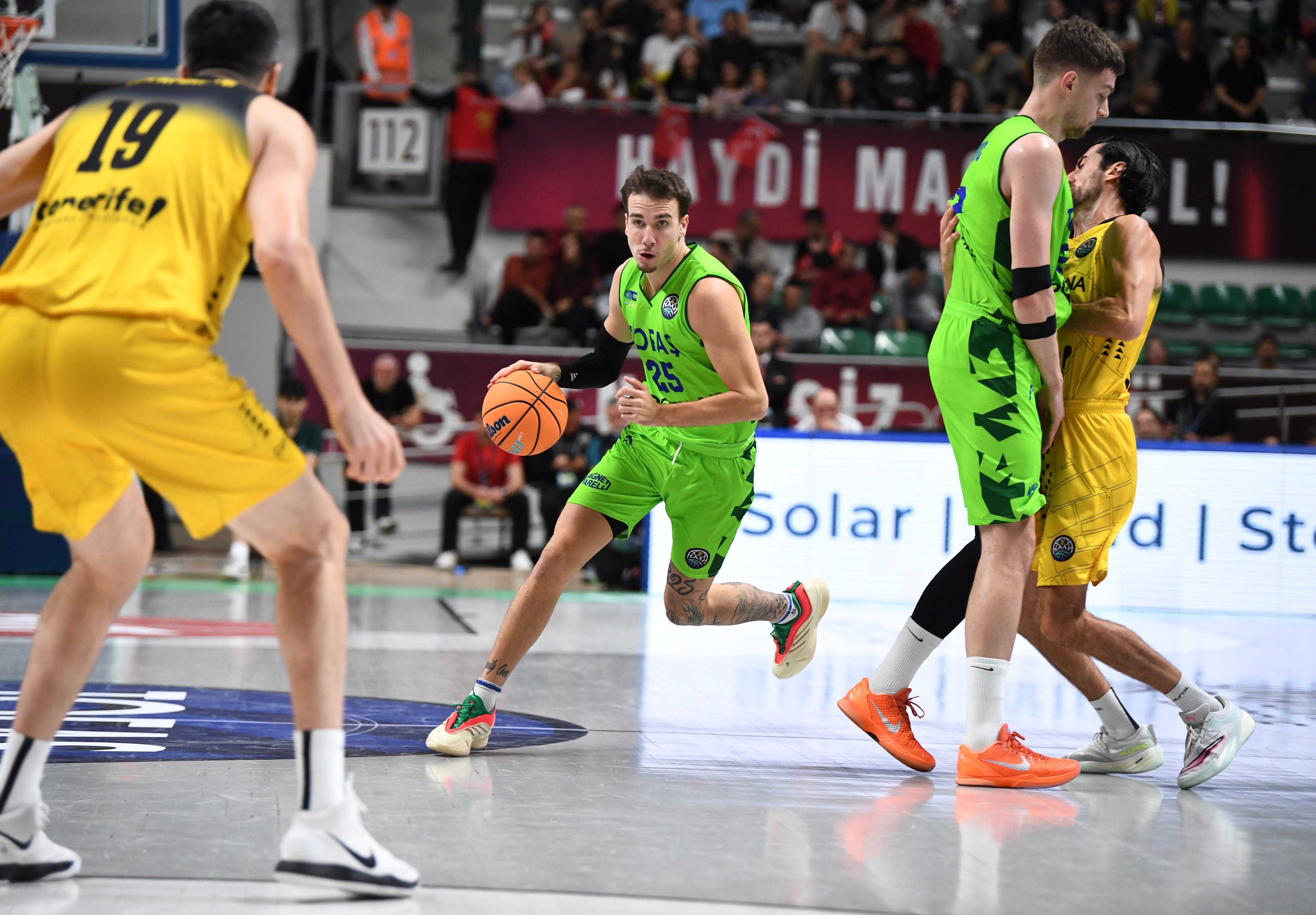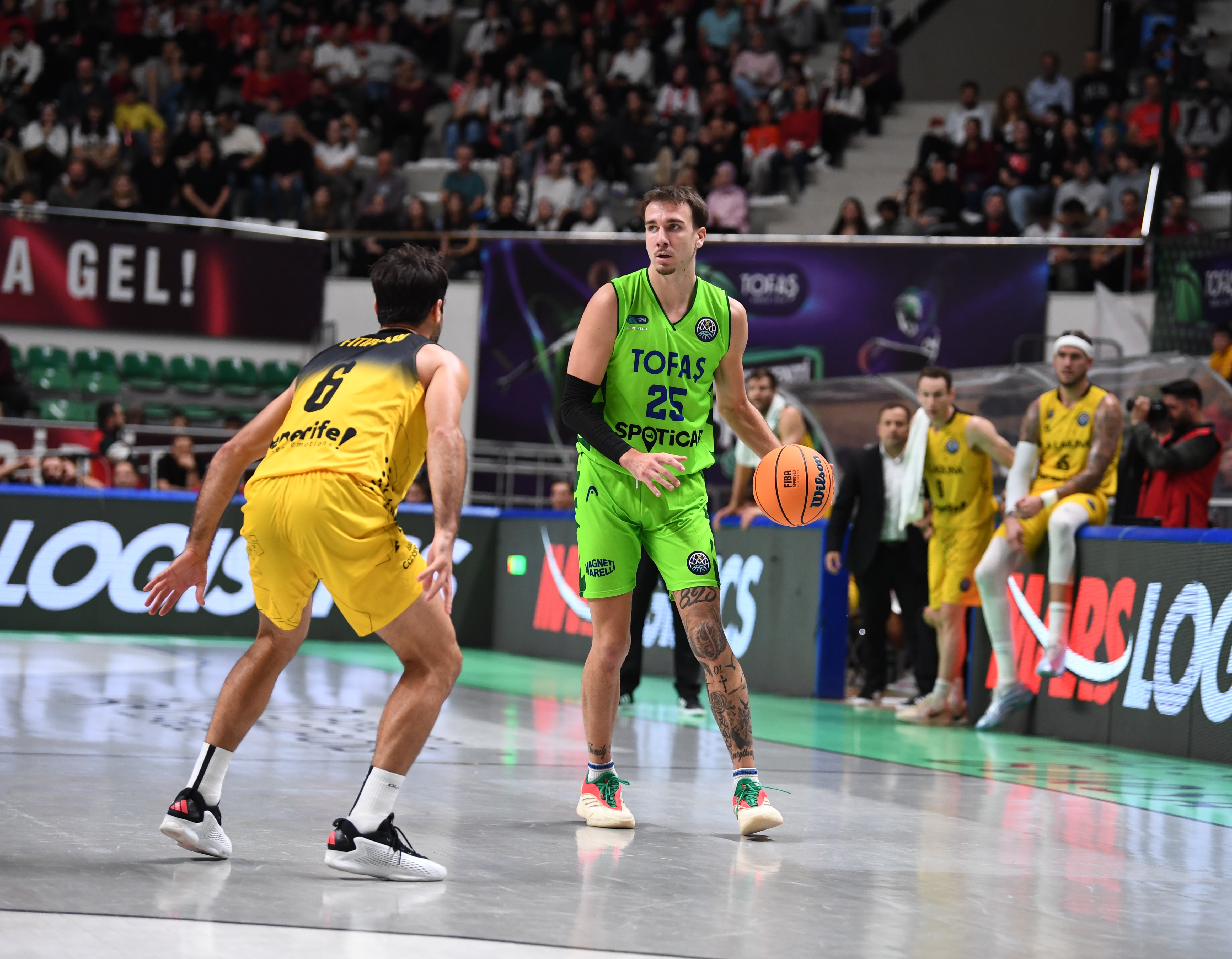 FIBA organizasyonu Basketball Champions League (BCL) 2025-2026 normal sezonunda D Grubu’nda yer alan TOFAŞ, 3. hafta karşılaşmasında İspanyol temsilcisi La Laguna Tenerife’yi ağırladı. Nilüfer TOFAŞ Spor Salonu’nda oynanan maça Alex Perez, Joe Thomasson, Maxwell Lewis, Yiğitcan Saybir, Marek Blazevic beşiyle başlayan Mavi Yeşilliler, ilk basketini Yiğitcan Saybir ile buldu. Rakip sayılarına Maxwell Lewis, Hugo Besson ve Marek Blazevic ile karşılık veren Bursa ekibi, 6. dakikada skoru 8-12 yapsa da ilk çeyreği 12-20 geride kapattı.