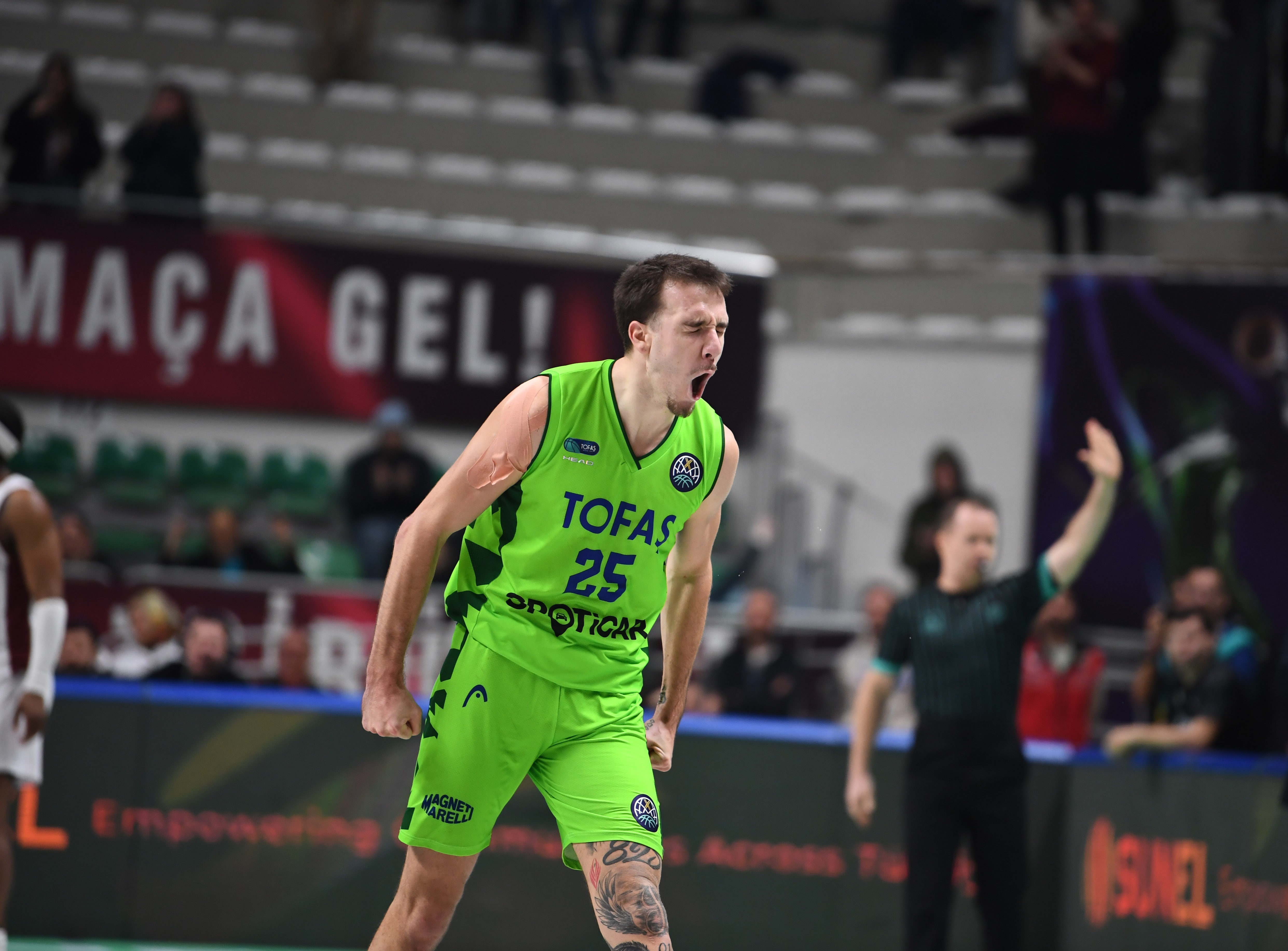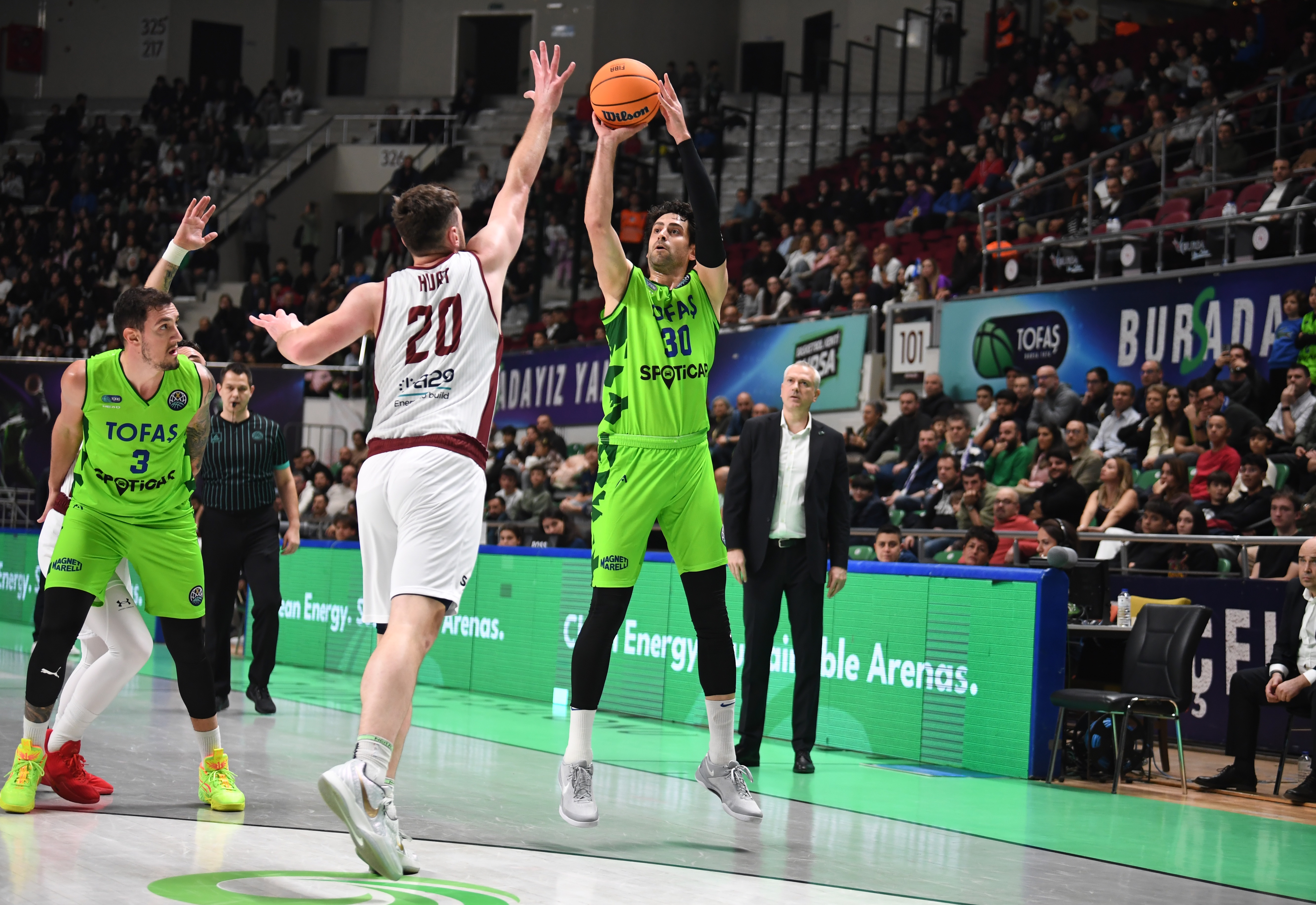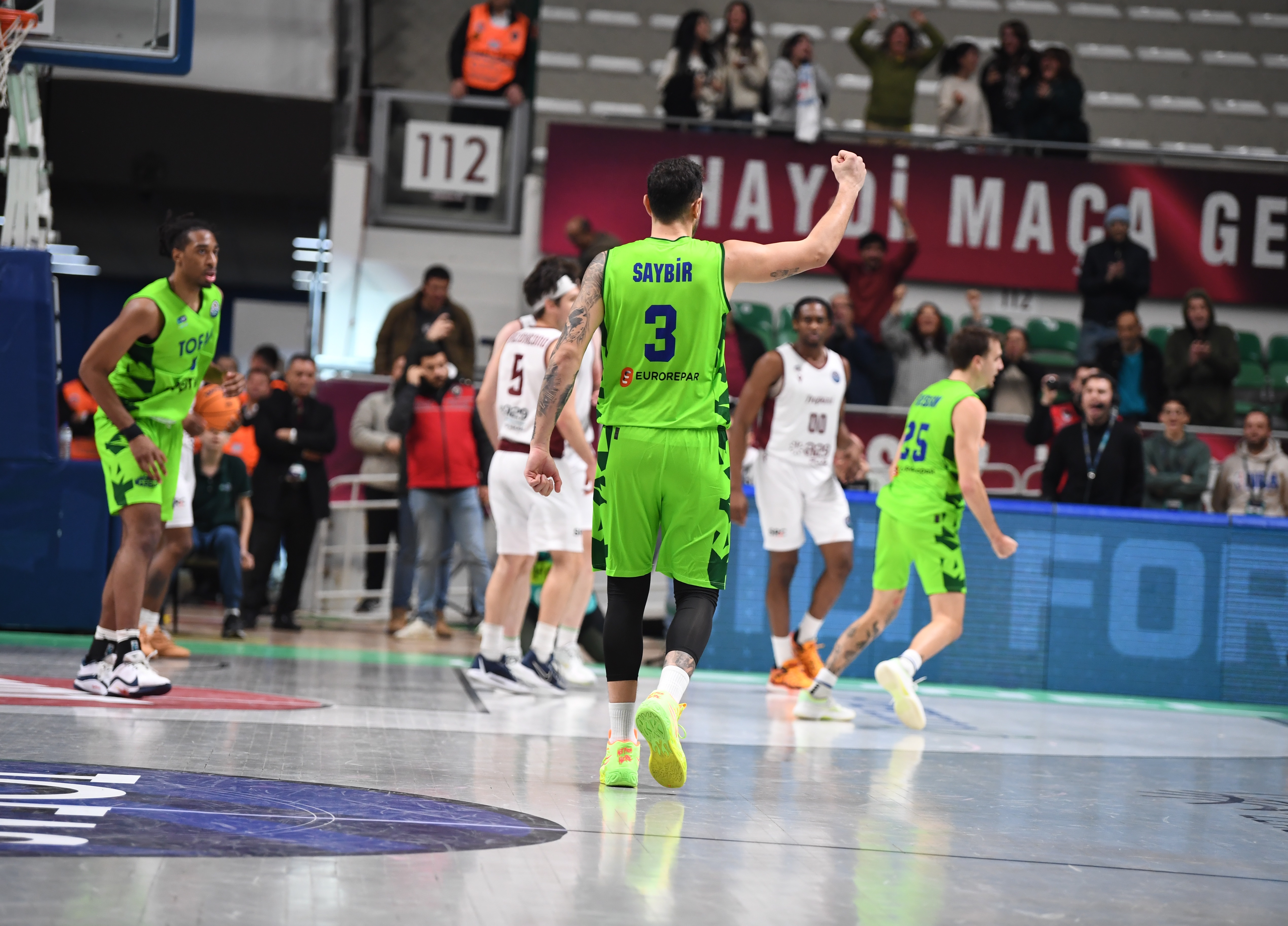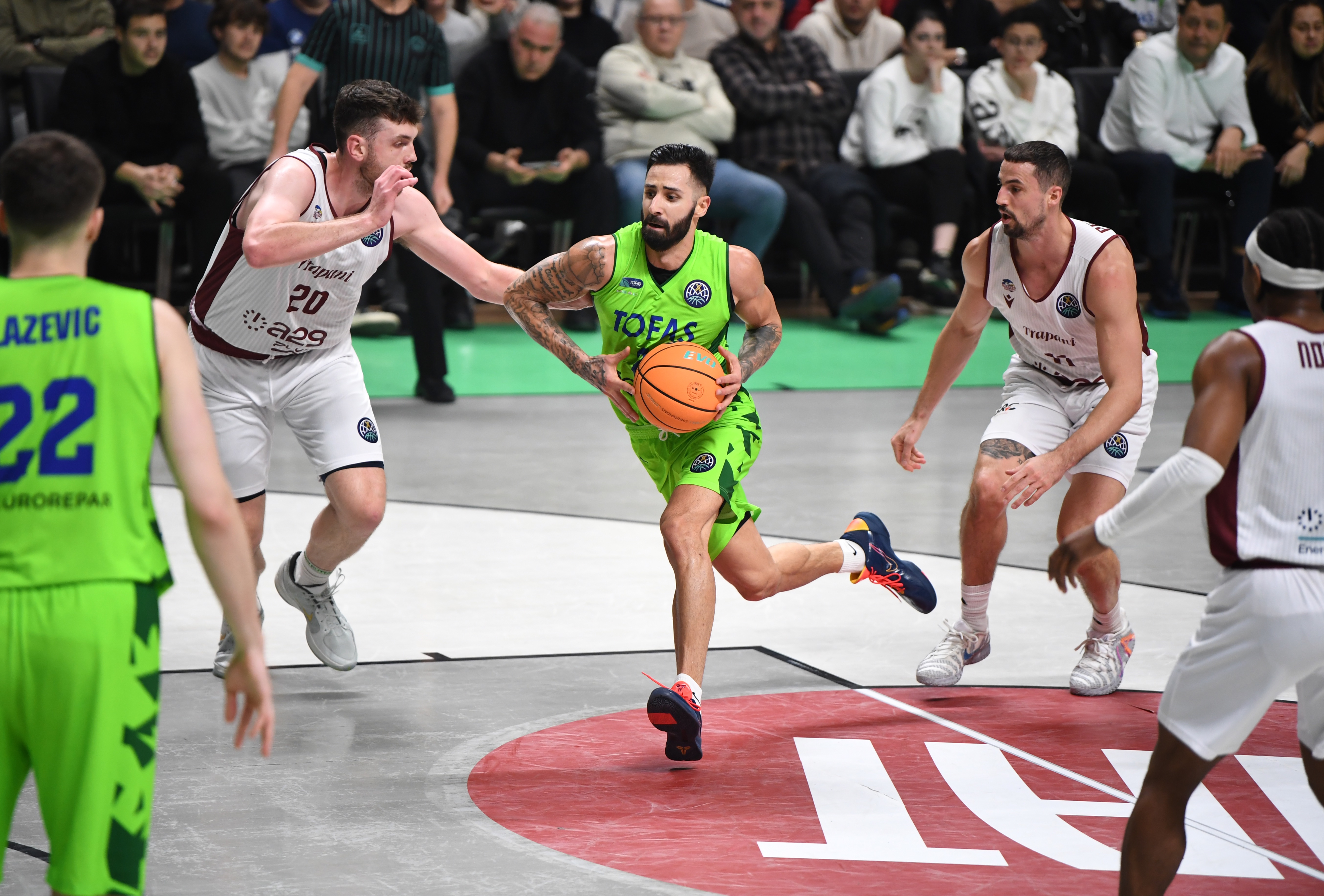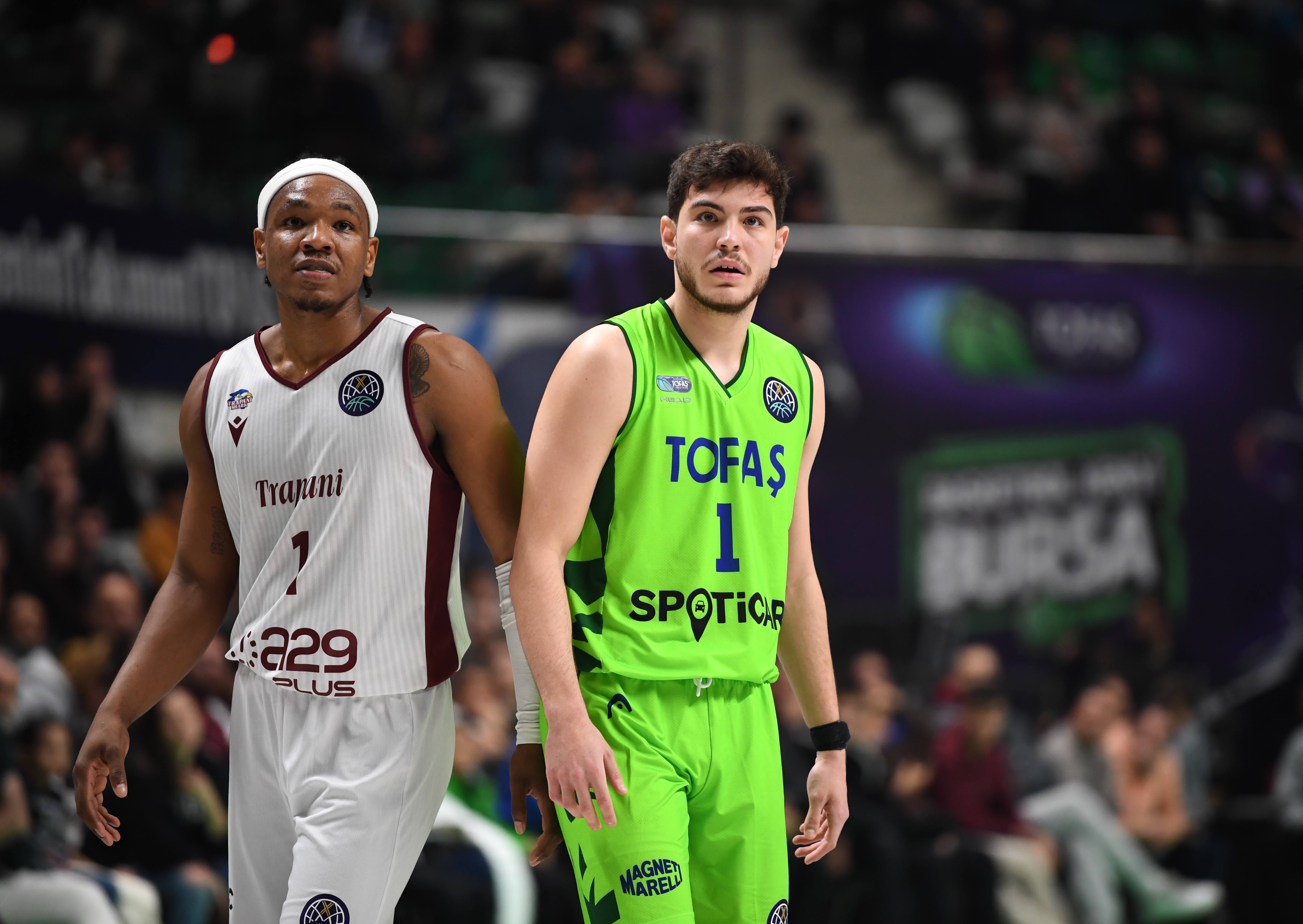 Basketball Champions League (BCL) 2025-2026 normal sezonunda D Grubu’nda yer alan TOFAŞ, son hafta karşılaşmasında İtalyan temsilcisi Trapani Shark’ı konuk etti. Nilüfer TOFAŞ Spor Salonu’nda oynanan maça Alex Perez, Hugo Besson, Furkan Korkmaz, Yiğitcan Saybir, Isaiah Whaley beşiyle başlayan Mavi Yeşilliler, ilk basketini Yiğitcan Saybir ile buldu. Rakip sayılarına Isaiah Whaley ile karşılık veren Bursa ekibi, 6. dakikada televizyon molasına 8-19 geride girdi. Mola dönüşü Marek Blazevic, Tolga Geçim ve Alex Perez ile skor bulan ev sahibi takım, ilk periyodu 18-28 geride kapattı.