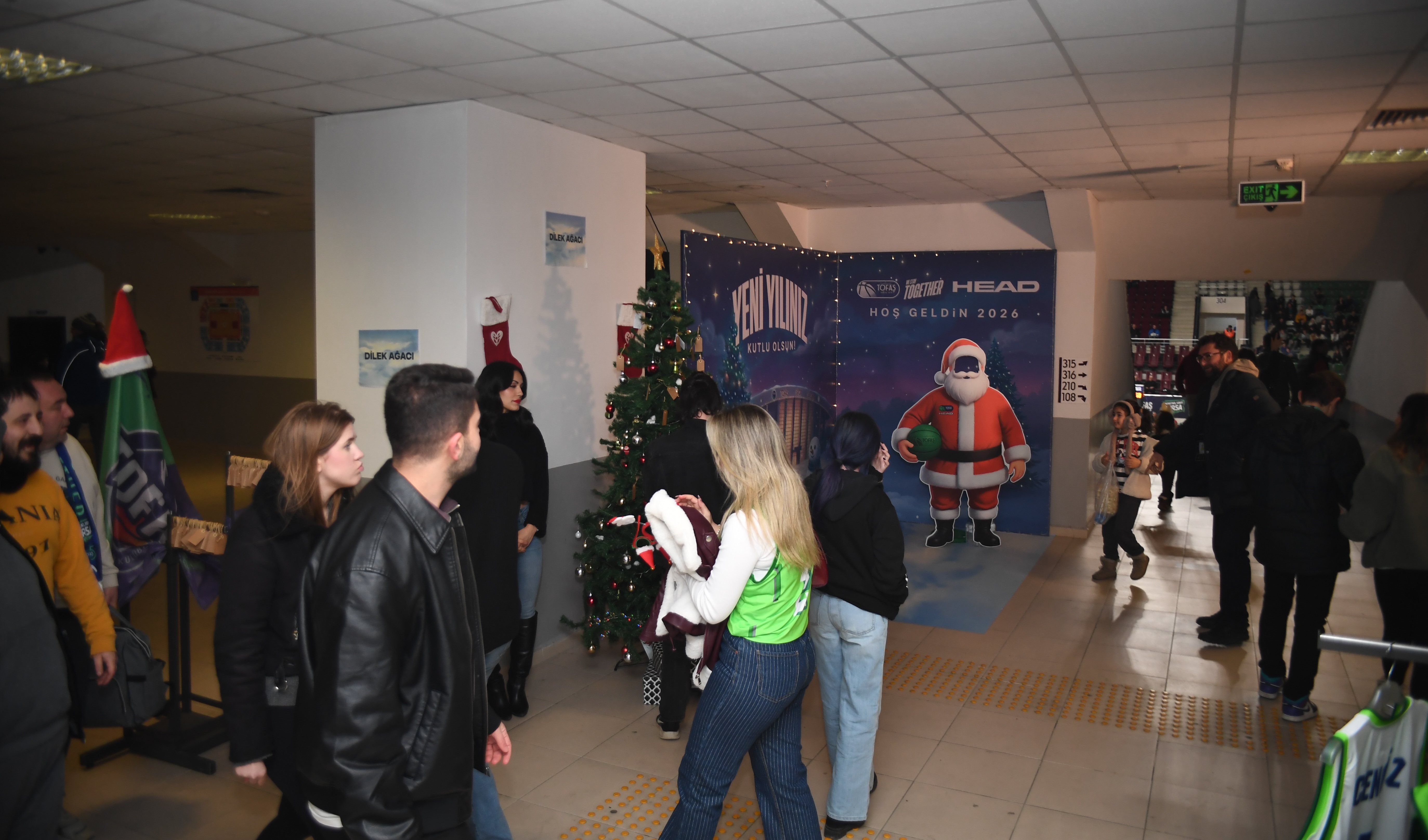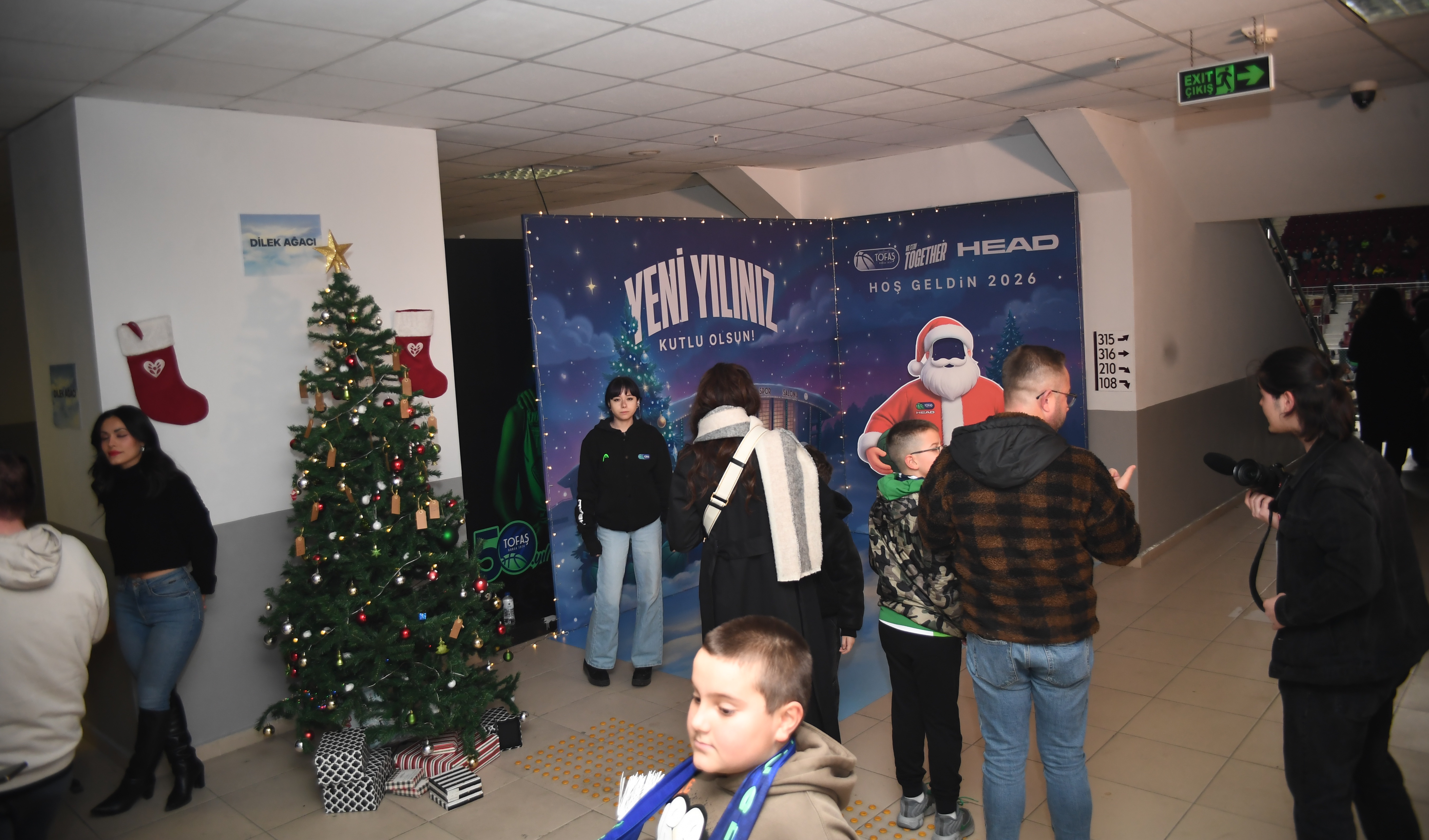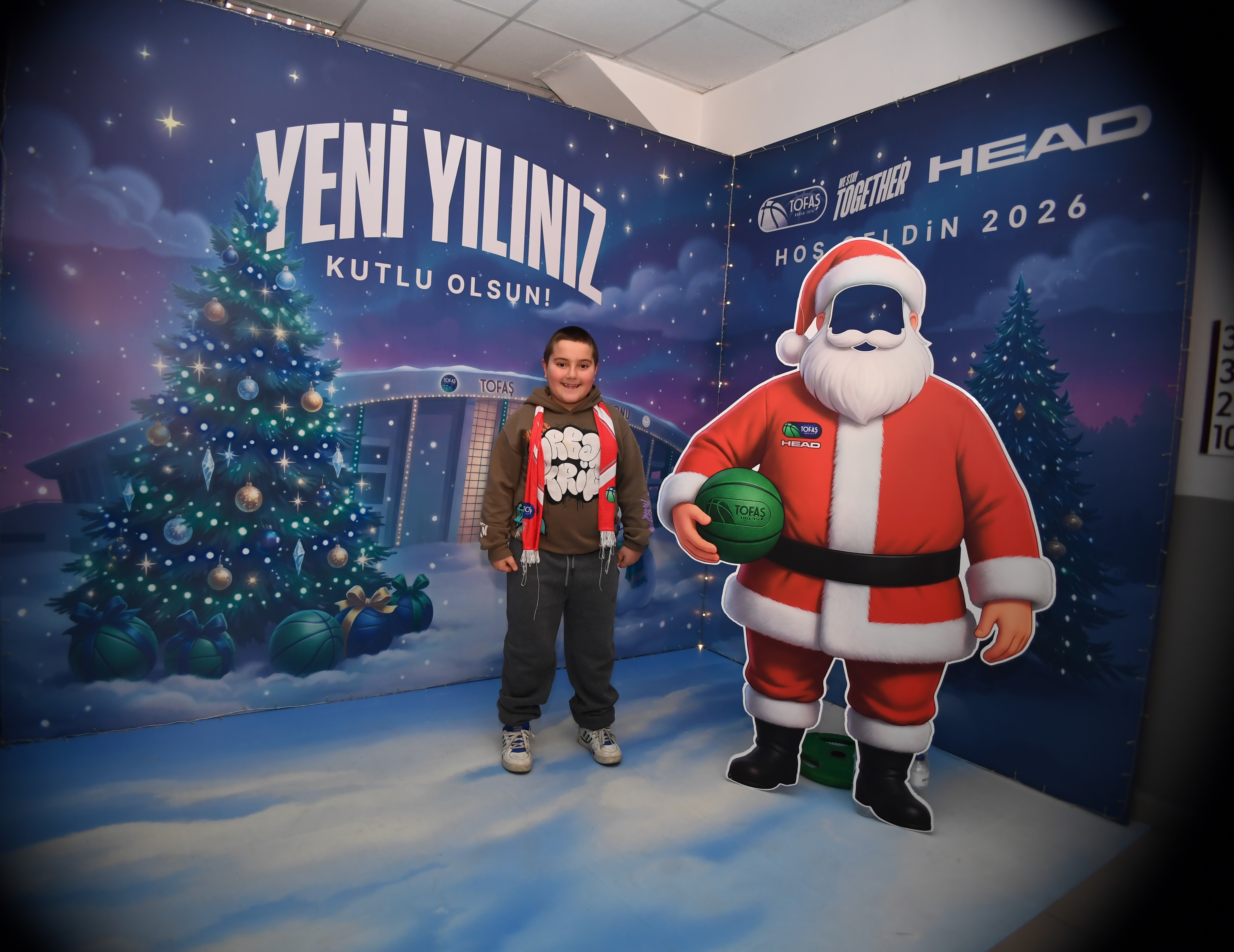 TOFAŞ’ın Bahçeşehir Koleji ile oynadığı yılın son maçında salon girişinde oluşturulan yeni yıl alanında renkli görüntüler ortaya çıktı. Dilek ağacına takıma mesajlarını ve dileklerini asan Bursalı basketbol severler, oluşturulan yılbaşı temalı fotoğraf alanında “Noel Baba” kostümüyle birlikte hatıra fotoğrafı çektirerek yeni yıl coşkusunu şimdiden yaşamaya başladı.