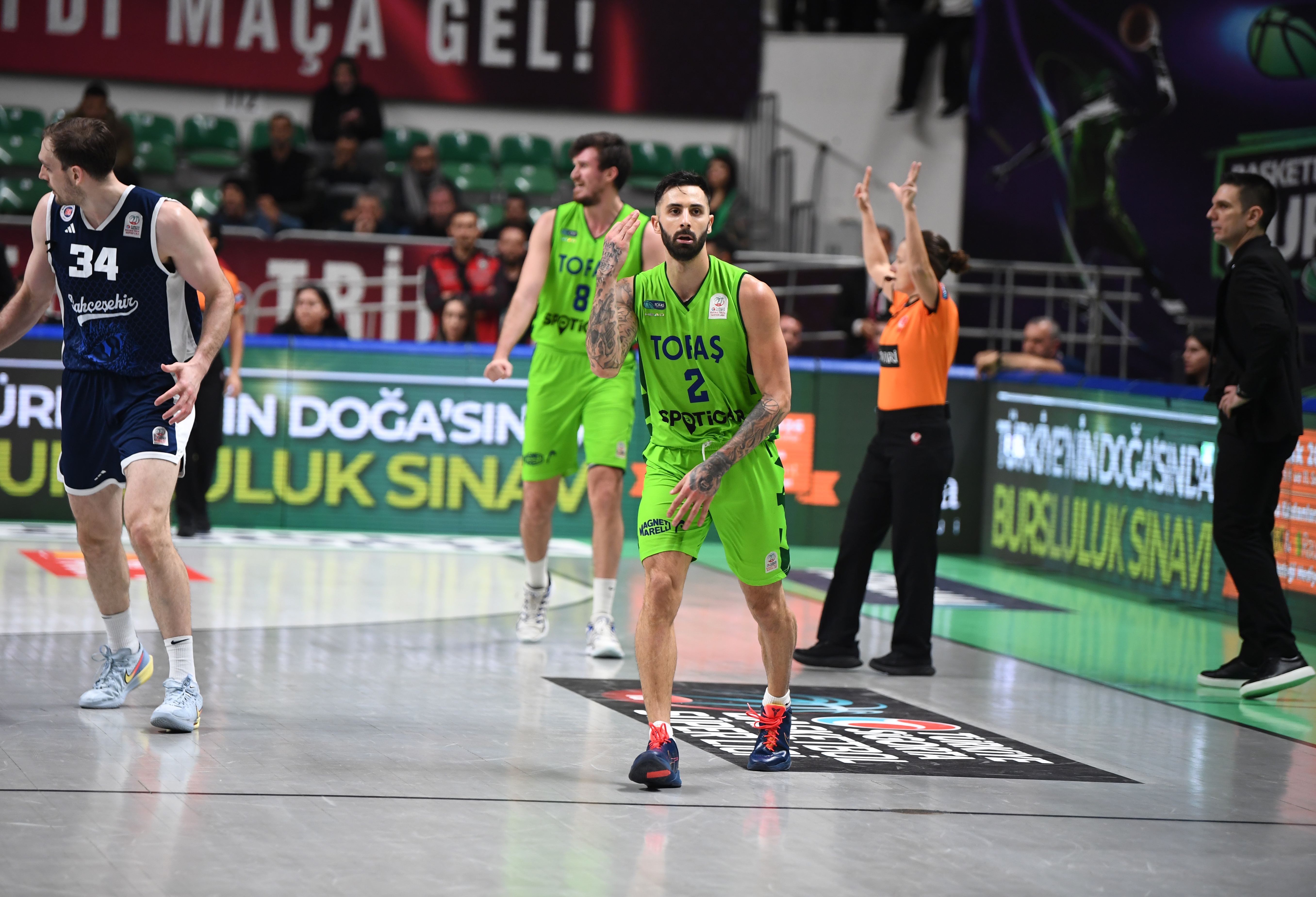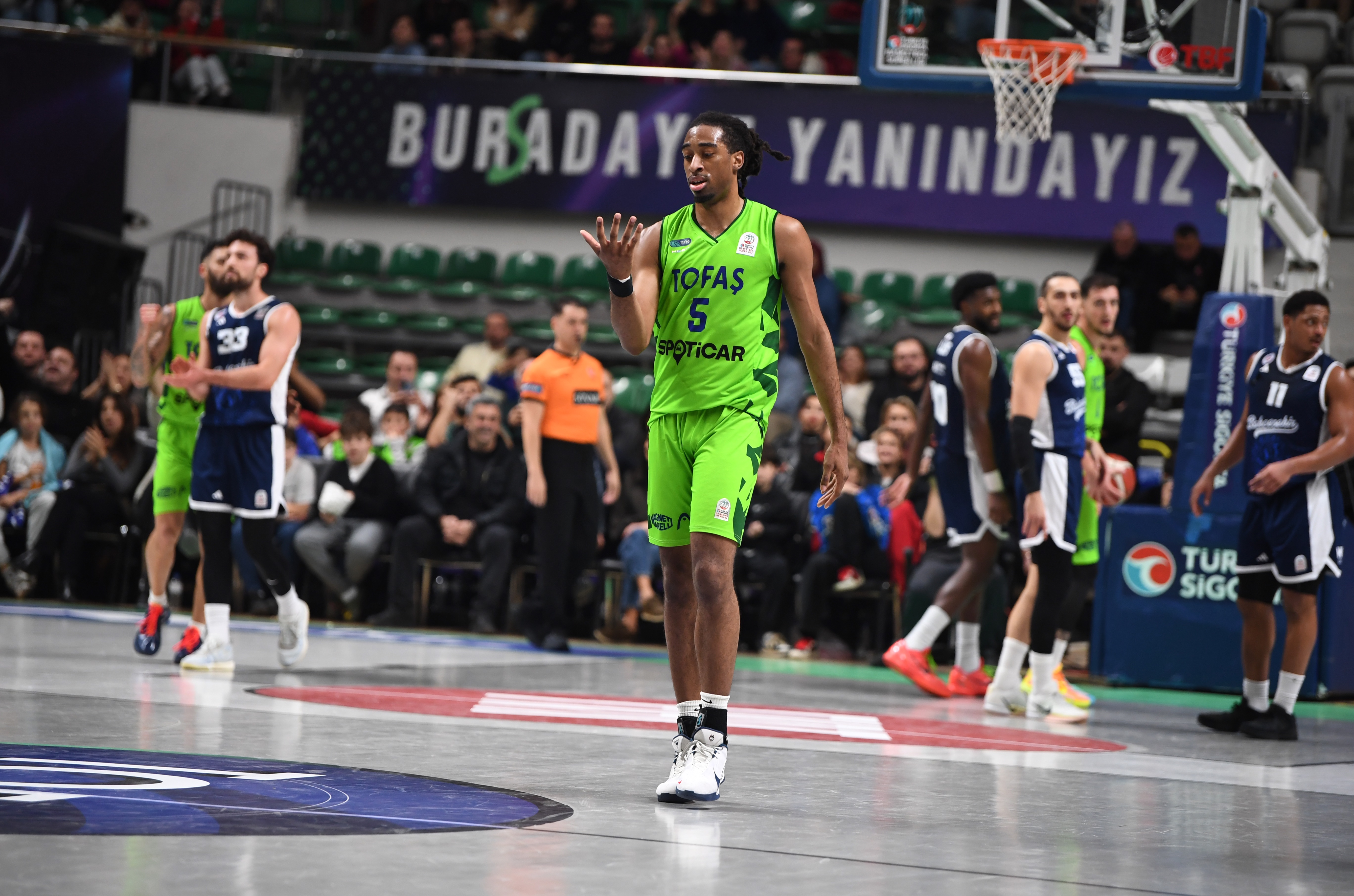 Türkiye Sigorta Basketbol Süper Ligi 13. hafta karşılaşmasında TOFAŞ, sahasında Bahçeşehir Koleji’ni ağırladı. Nilüfer TOFAŞ Spor Salonu’nda oynanan maça Alex Perez, Joe Thomasson, Tolga Geçim, Yiğitcan Saybir, Marek Blazevic beşiyle başlayan Mavi Yeşilliler, ilk basketini Marek Blazevic ile buldu. Rakip sayılarına Alex Perez ve Marek Blazevic ile karşılık vererek 7-5 öne geçen Bursa ekibi, Yiğitcan Saybir ve Marek Blazevic’in sayıları sonrası 5. dakikada televizyon molasına 11-13 geride girdi. Çeyrek sonunda Maxwell Lewis ve Özgür Cengiz ile skor bulan ev sahibi takım, ilk çeyreği 17-22 geride girdi.