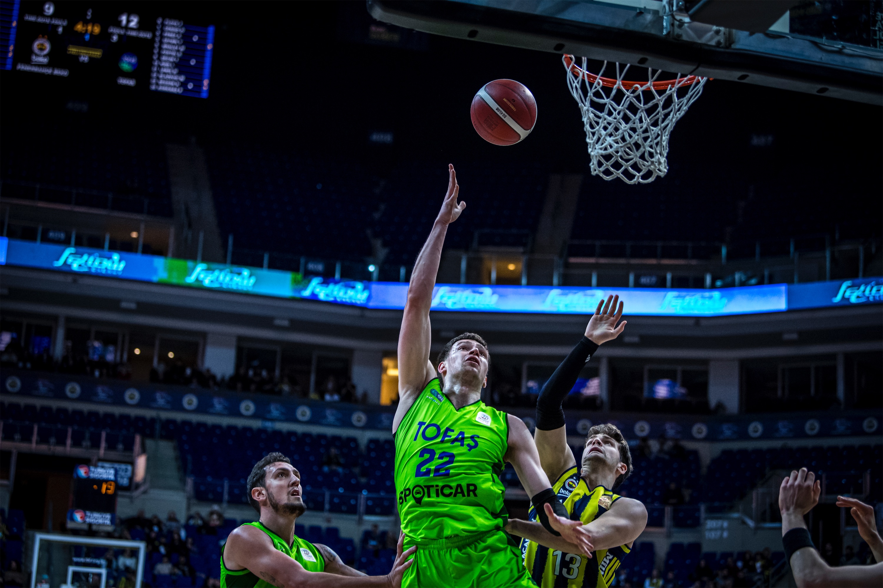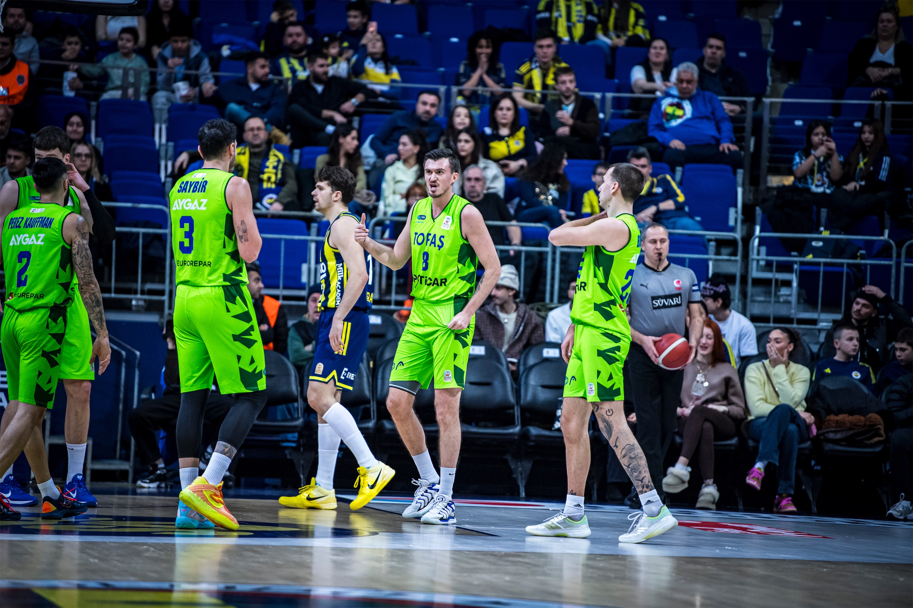 Türkiye Sigorta Basketbol Süper Ligi’nde ikinci devrenin açılış haftası olan 16. hafta mücadelesinde takımımız TOFAŞ, Fenerbahçe Beko’ya konuk oldu. Ülker Spor ve Etkinlik Salonu’nda oynanan maça Alex Perez, Hugo Besson, Tolga Geçim, Yiğitcan Saybir, Marek Blazevic beşiyle başlayan Mavi Yeşilliler, ilk basketini Marek Blazevic ile buldu. Rakip sayılarına Hugo Besson, Yiğitcan Saybir ve Marek Blazevic ile karşılık vererek 6. dakikada televizyon molasına 9-14 önde giren Bursa ekibi, mola dönüşü Maxwell Lewis’in üçlüğü sonrası Jordan Floyd ve Lynn Kidd ile sayılar bularak ilk periyodu 19-23 önde kapattı.