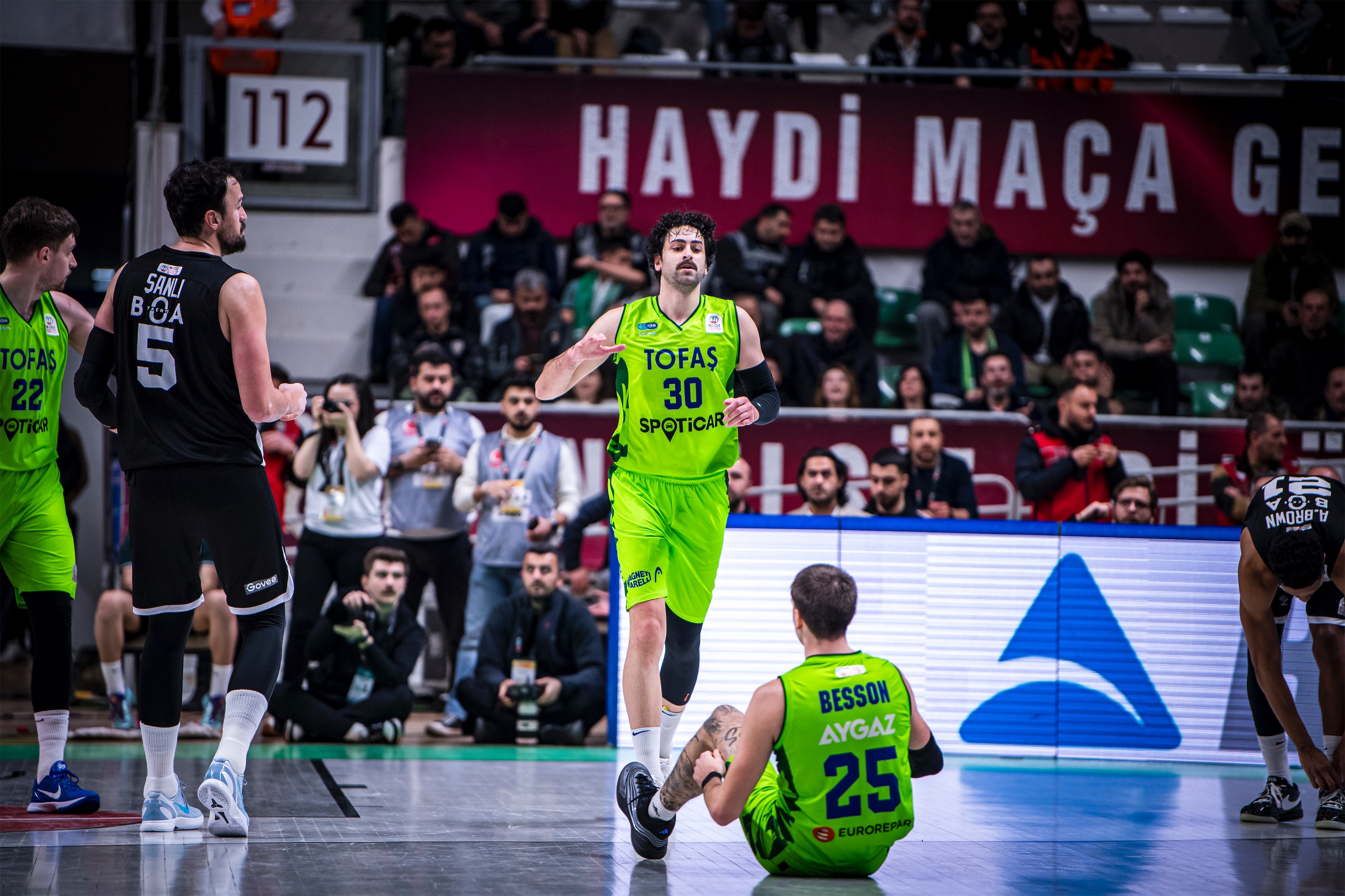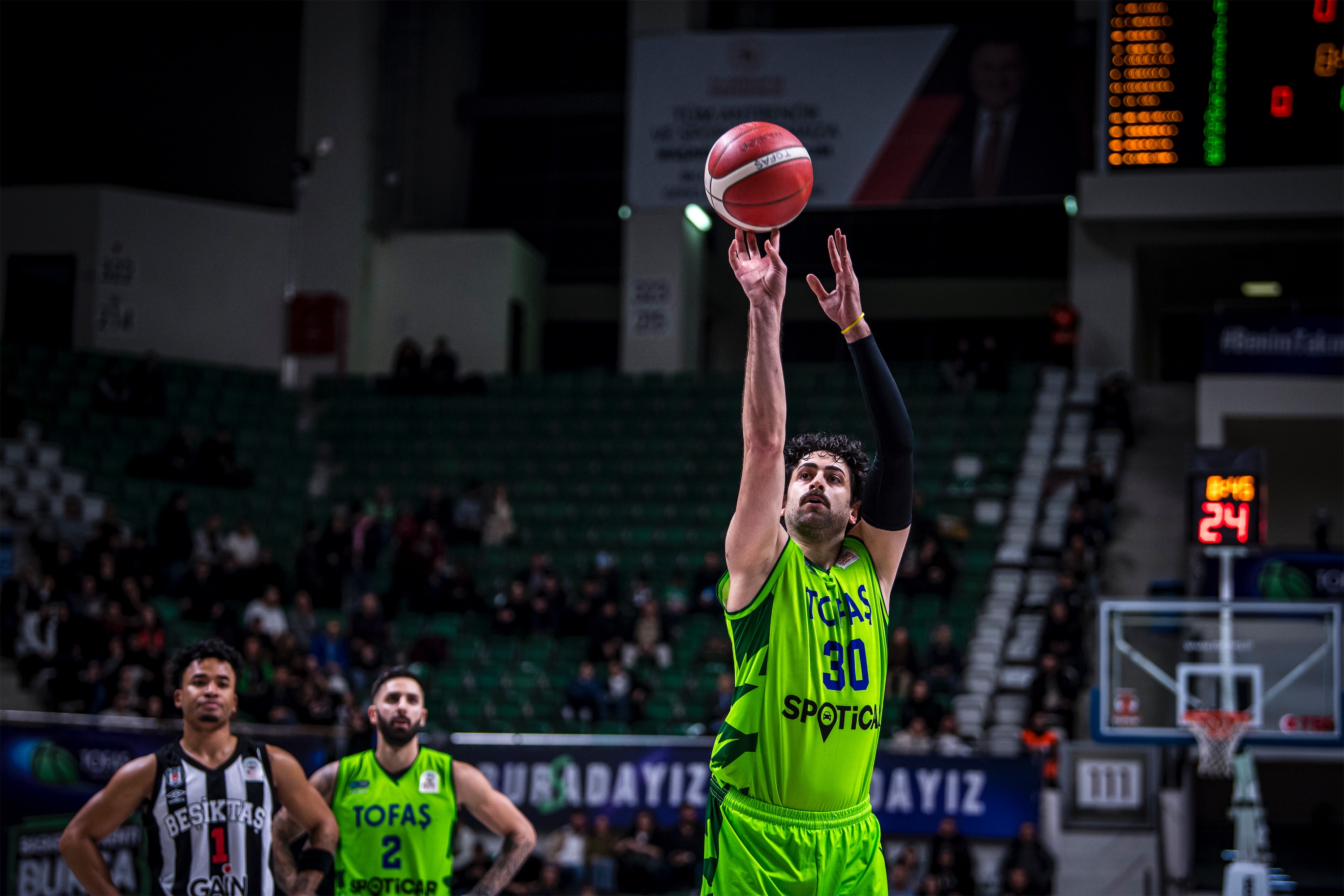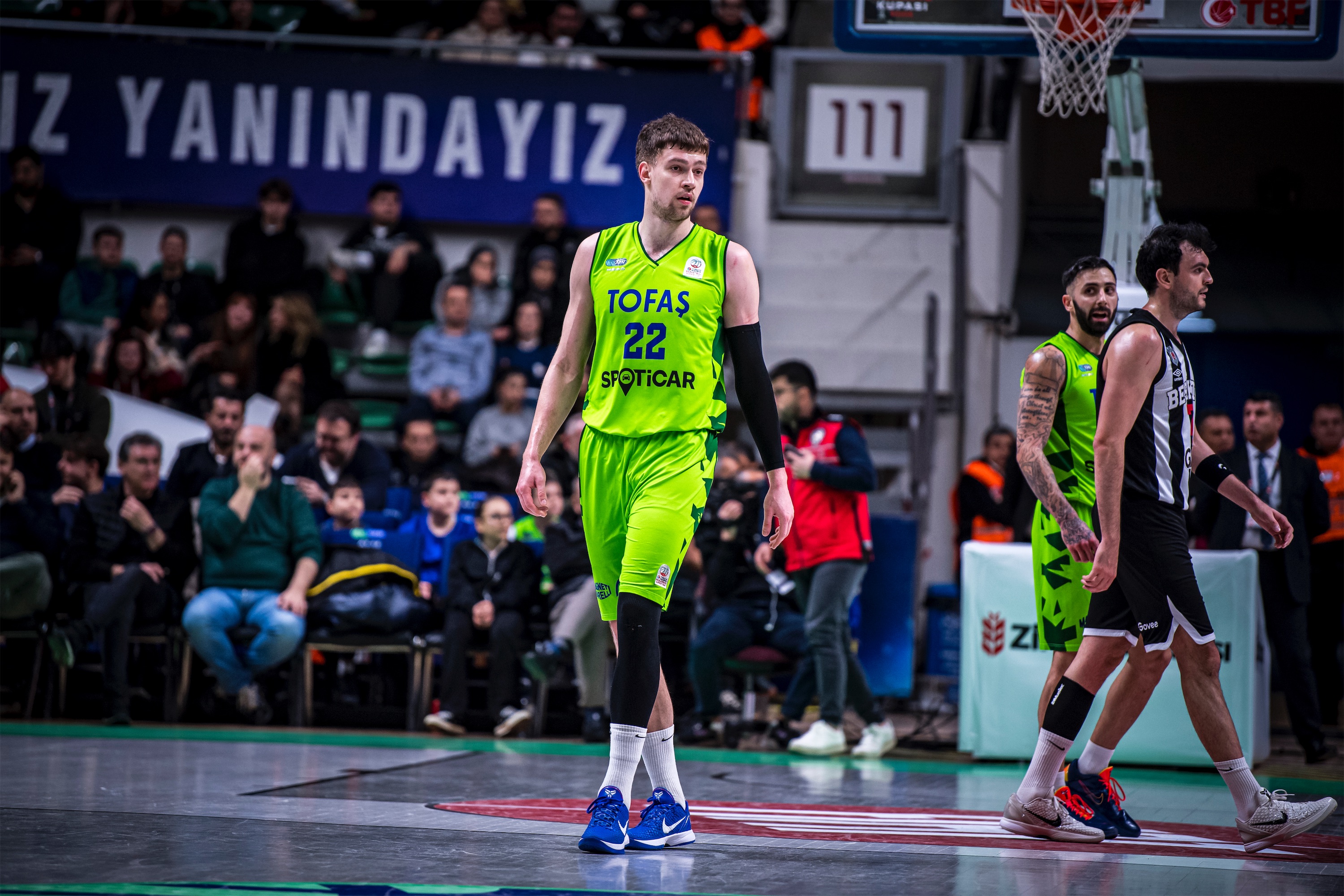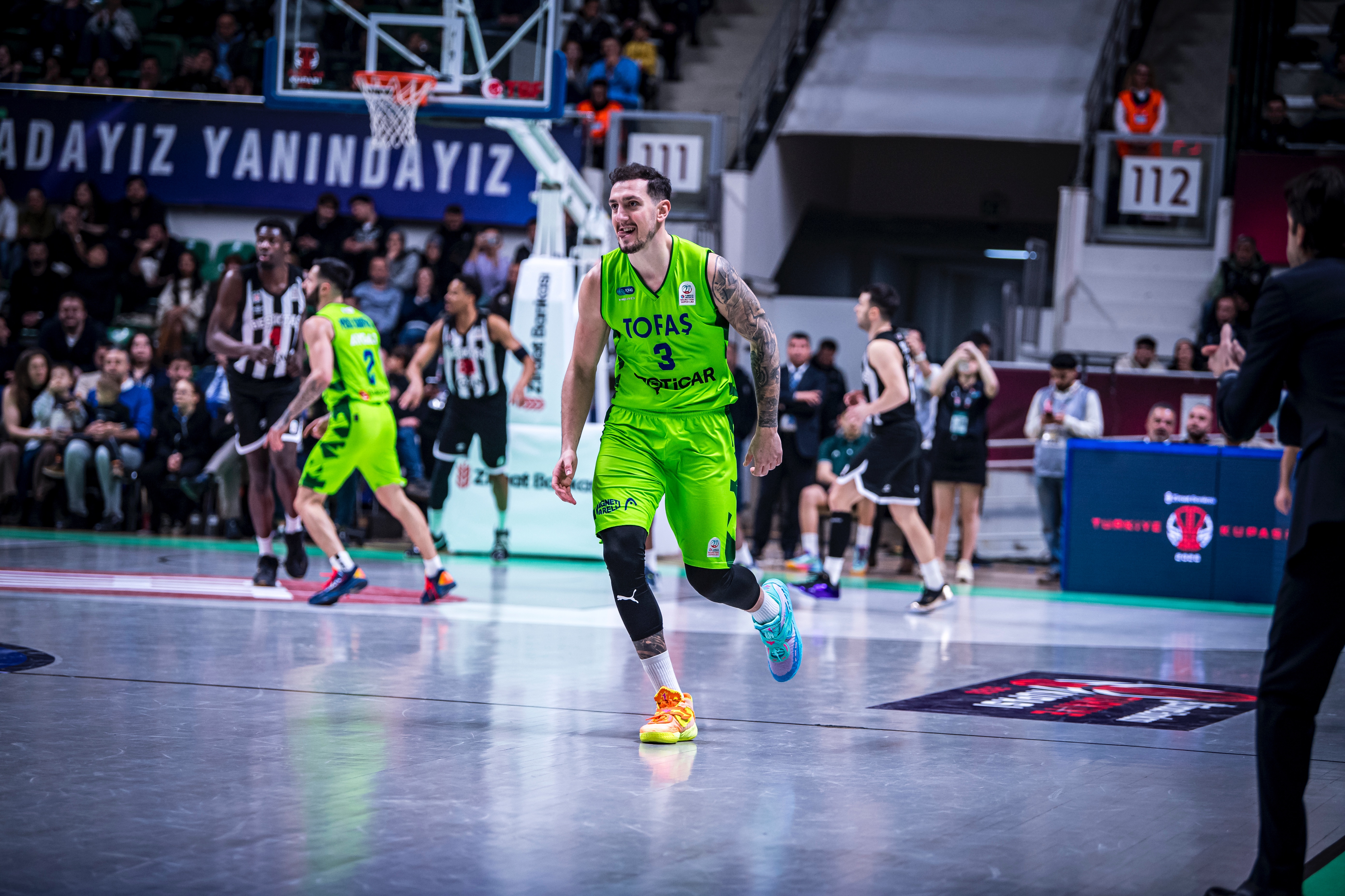 Türkiye Sigorta Basketbol Süper Ligi'nde ilk yarıyı ilk 8 sırada tamamlayan takımların mücadele ettiği Ziraat Bankası Türkiye Kupası 2026’nın çeyrek final ayağında takımıımz TOFAŞ, sahasında Beşiktaş GAİN ile karşı karşıya geldi. Nilüfer TOFAŞ Spor Salonu’nda oynanan maça Alex Perez, Hugo Besson, Furkan Korkmaz, Yiğitcan Saybir, Marek Blazevic beşiyle başlayan Bursa ekibi, ilk sayılarını Furkan Korkmaz’ın serbest atışlarıyla buldu. Rakip sayılarına Marek Blazevic, Yiğitcan Saybir ve Furkan Korkmaz ile karşılık veren ev sahibi takım 11-10 öne geçerken, televizyon molasına 11-17 Beşiktaş GAİN üstünlüğüyle girildi. Moladan Alex Perez ve Marek Blazevic’in basketleriyle dönen TOFAŞ, Yiğitcan Saybir’in sayılarıyla skoru 17-17 eşitlerken, Marek Blazevic, Yiğitcan Saybir, Alex Perez, Jordan Floyd ve Isaiah Whaley’in sayılarıyla ilk periyodu 30-23 önde kapattı.