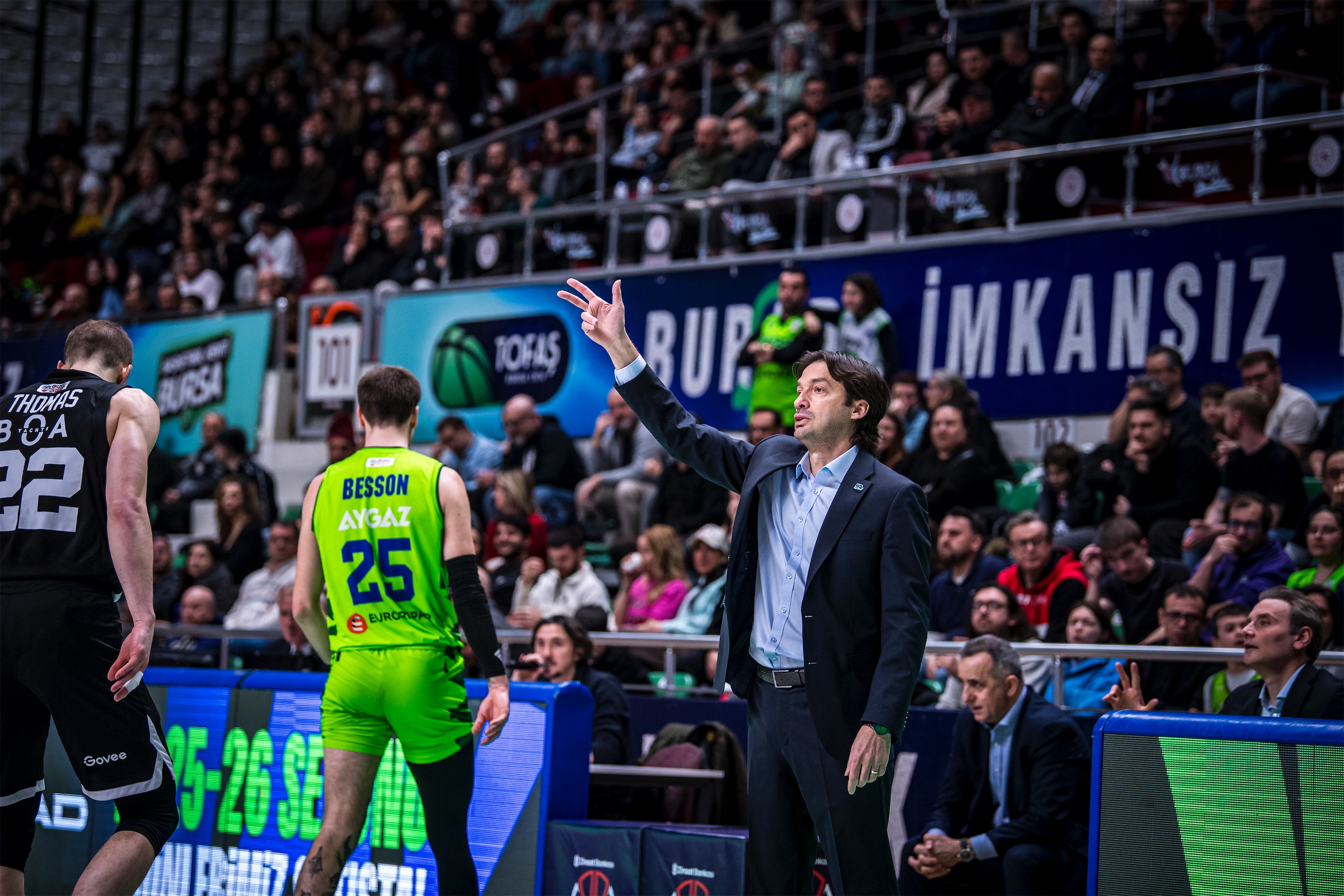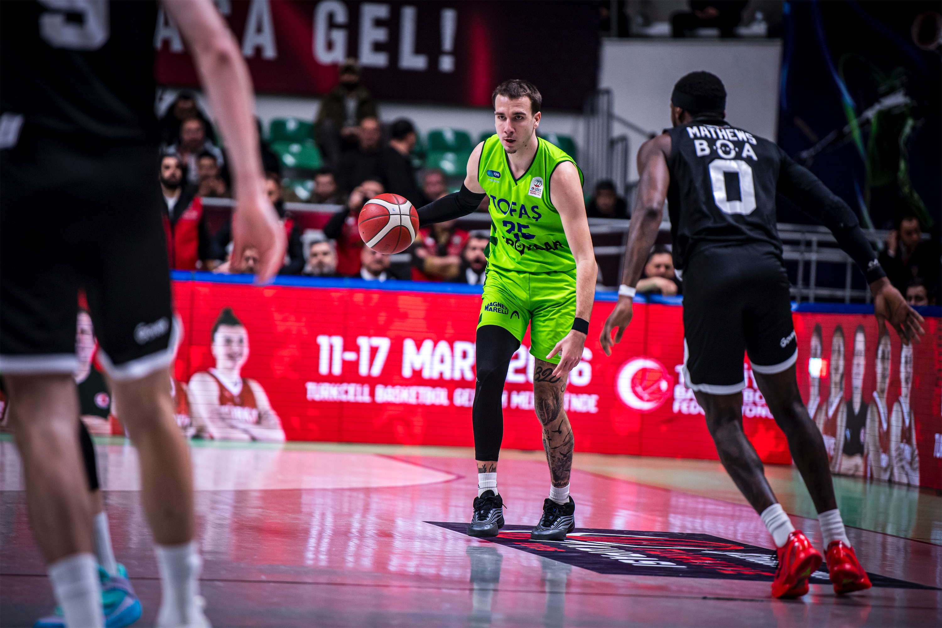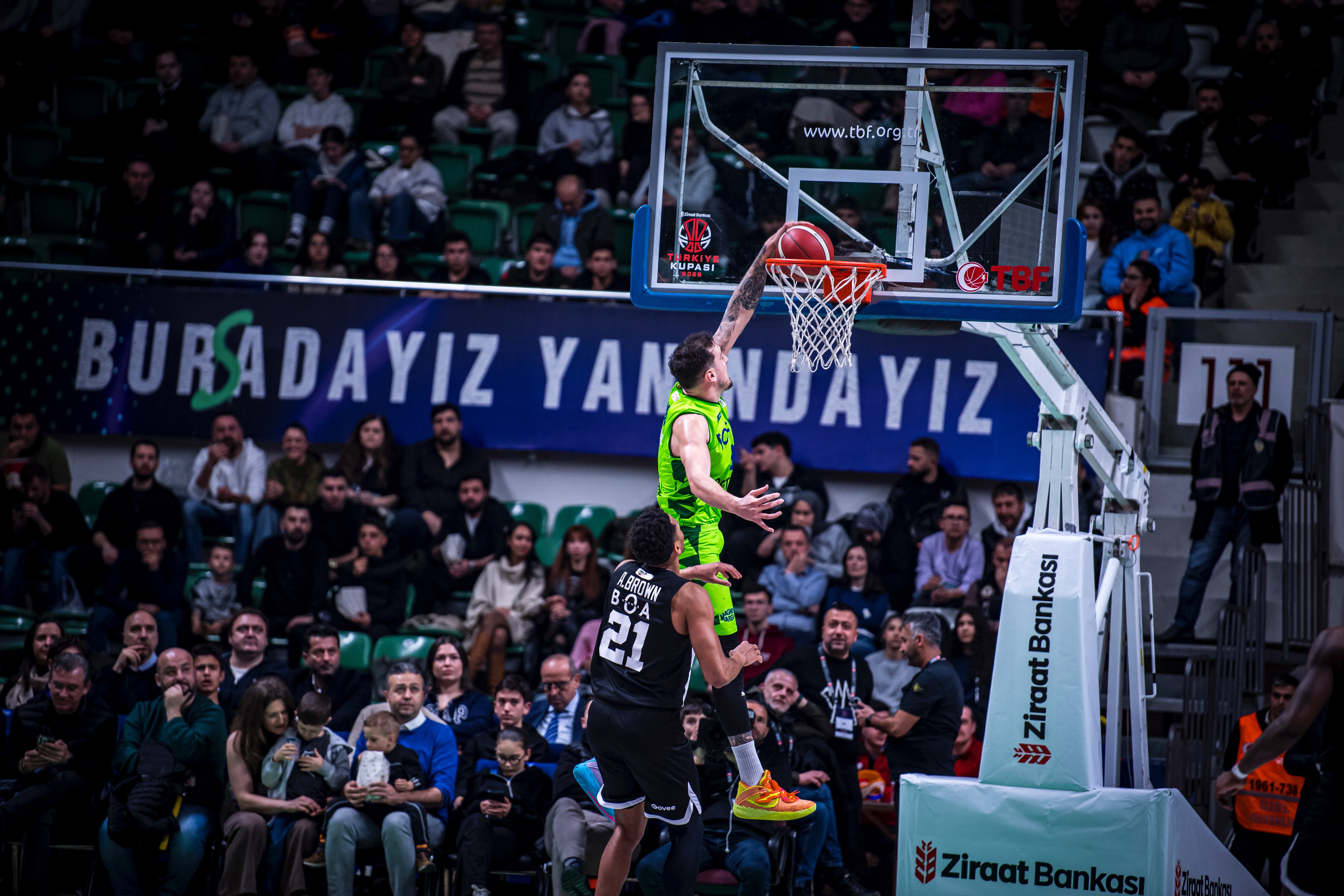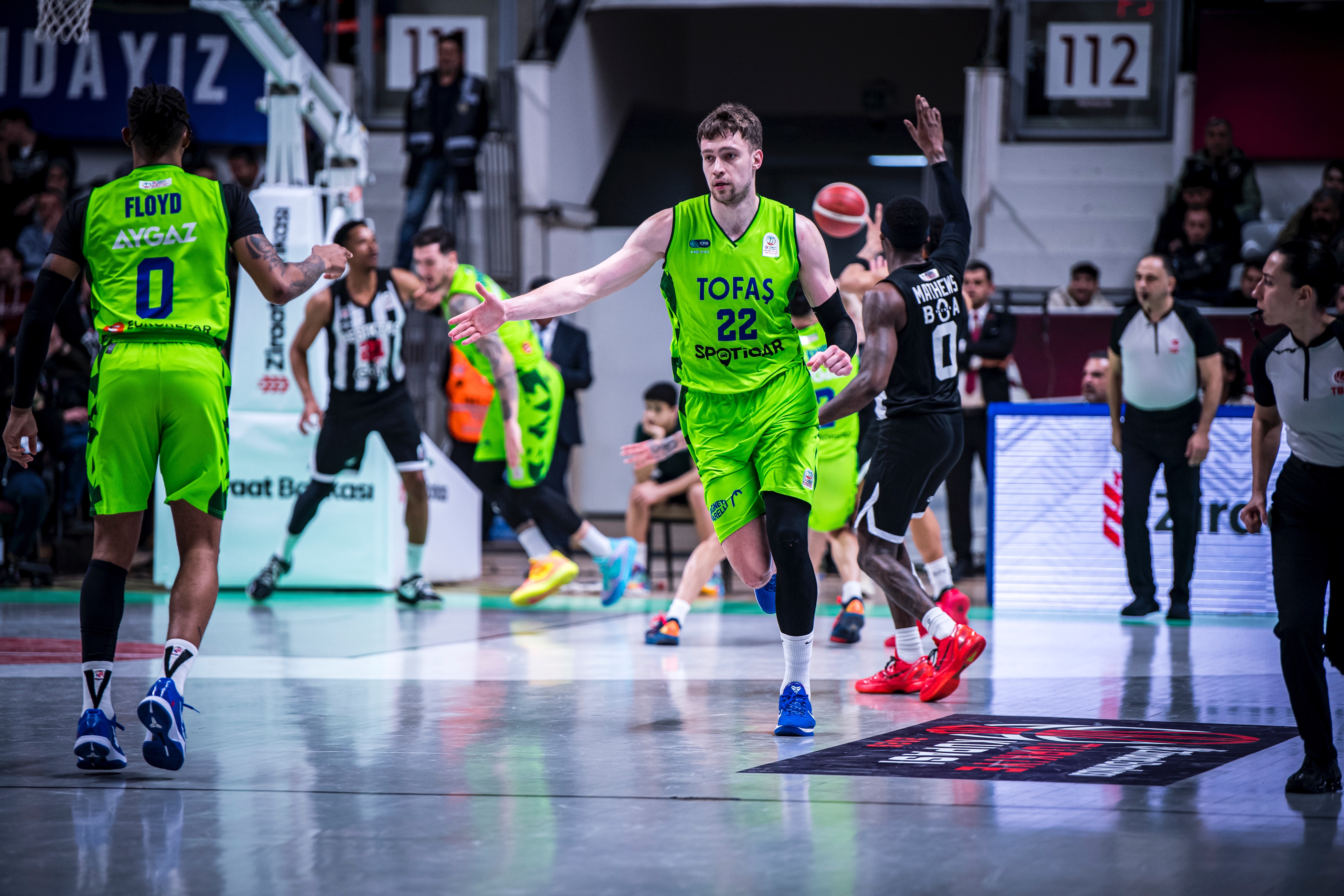 Türkiye Sigorta Basketbol Süper Ligi'nde ilk yarıyı ilk 8 sırada tamamlayan takımların mücadele ettiği Ziraat Bankası Türkiye Kupası 2026’nın çeyrek final ayağında takımıımz TOFAŞ, sahasında Beşiktaş GAİN ile karşı karşıya geldi. Nilüfer TOFAŞ Spor Salonu’nda oynanan maça Alex Perez, Hugo Besson, Furkan Korkmaz, Yiğitcan Saybir, Marek Blazevic beşiyle başlayan Bursa ekibi, ilk sayılarını Furkan Korkmaz’ın serbest atışlarıyla buldu. Rakip sayılarına Marek Blazevic, Yiğitcan Saybir ve Furkan Korkmaz ile karşılık veren ev sahibi takım 11-10 öne geçerken, televizyon molasına 11-17 Beşiktaş GAİN üstünlüğüyle girildi. Moladan Alex Perez ve Marek Blazevic’in basketleriyle dönen TOFAŞ, Yiğitcan Saybir’in sayılarıyla skoru 17-17 eşitlerken, Marek Blazevic, Yiğitcan Saybir, Alex Perez, Jordan Floyd ve Isaiah Whaley’in sayılarıyla ilk periyodu 30-23 önde kapattı.