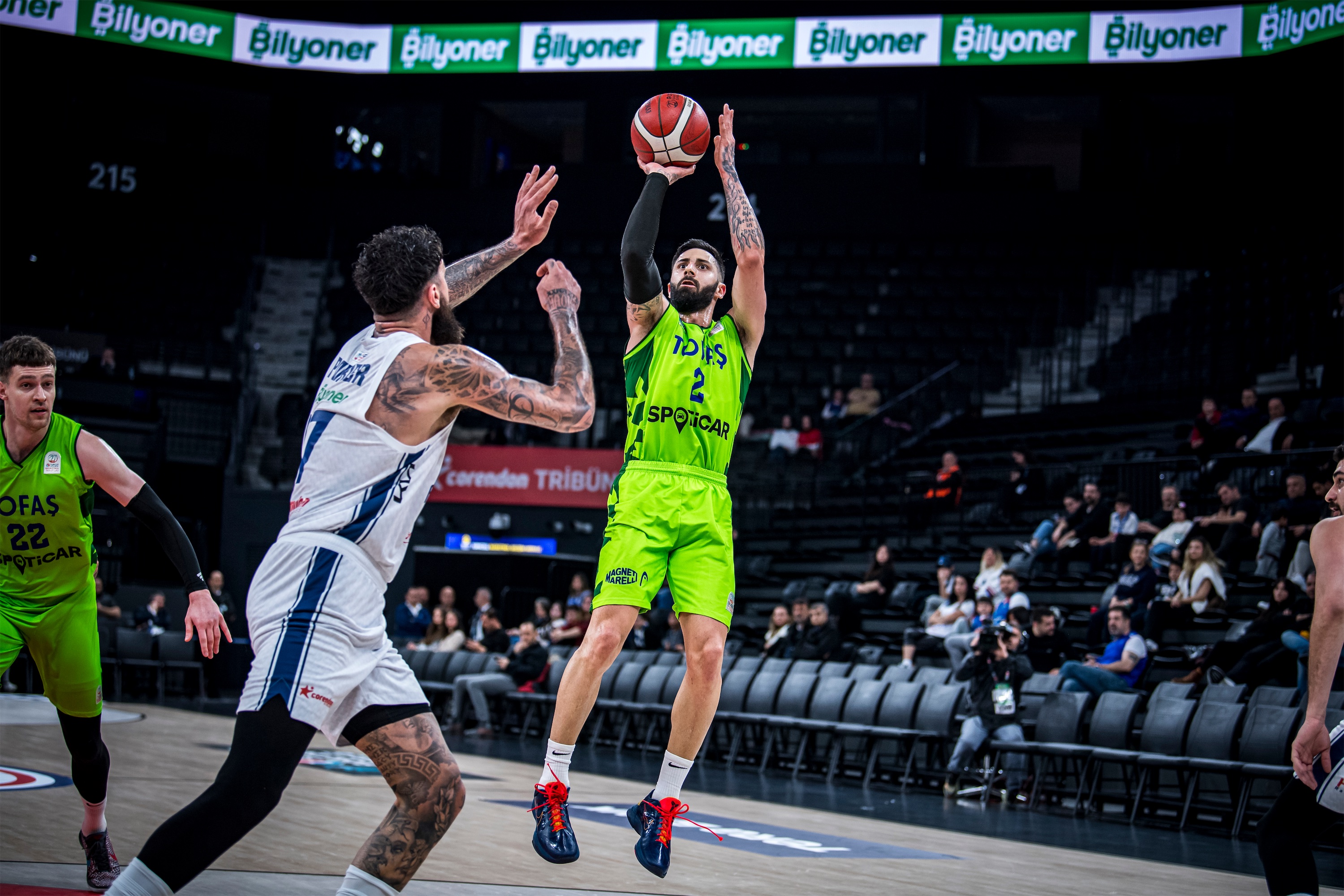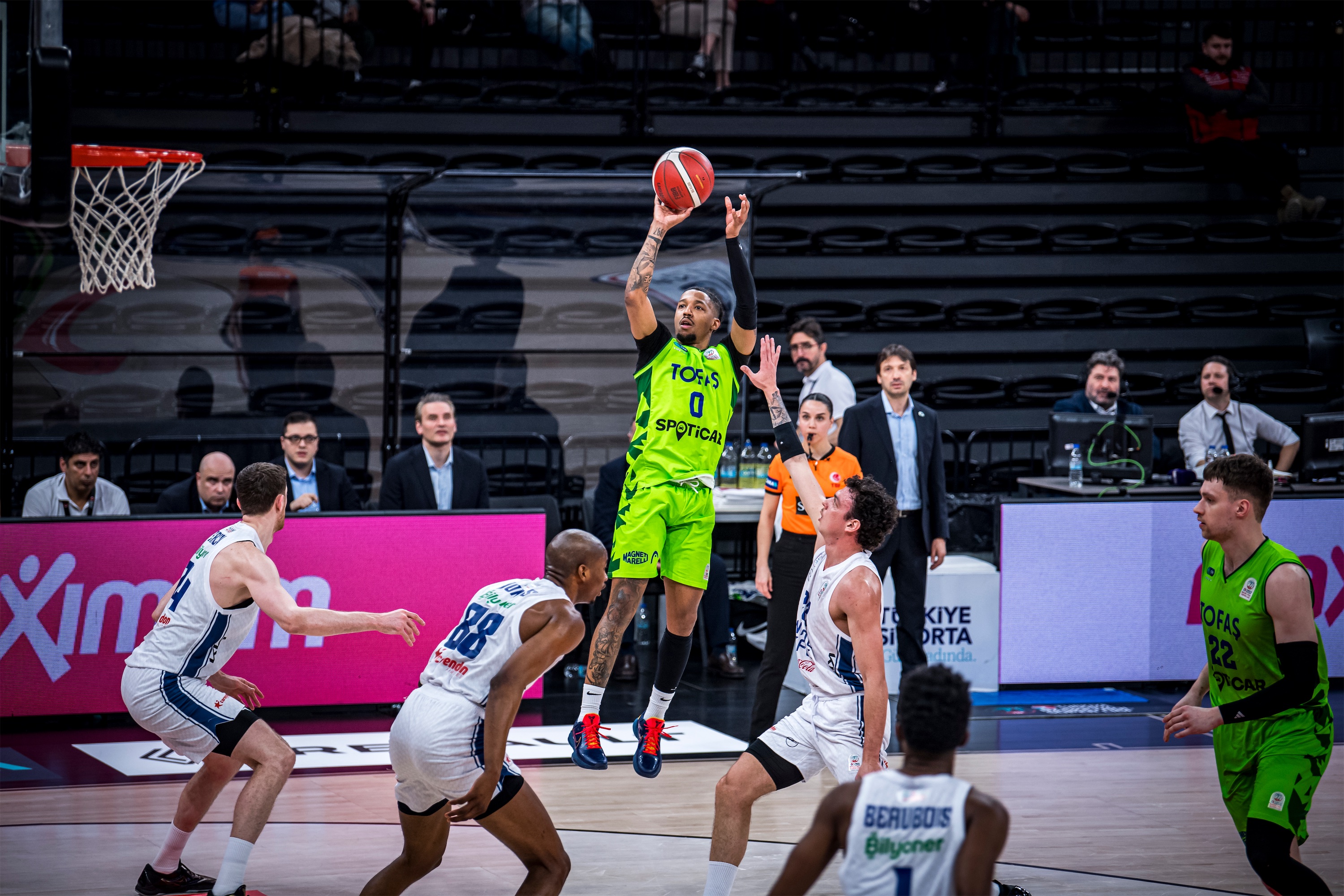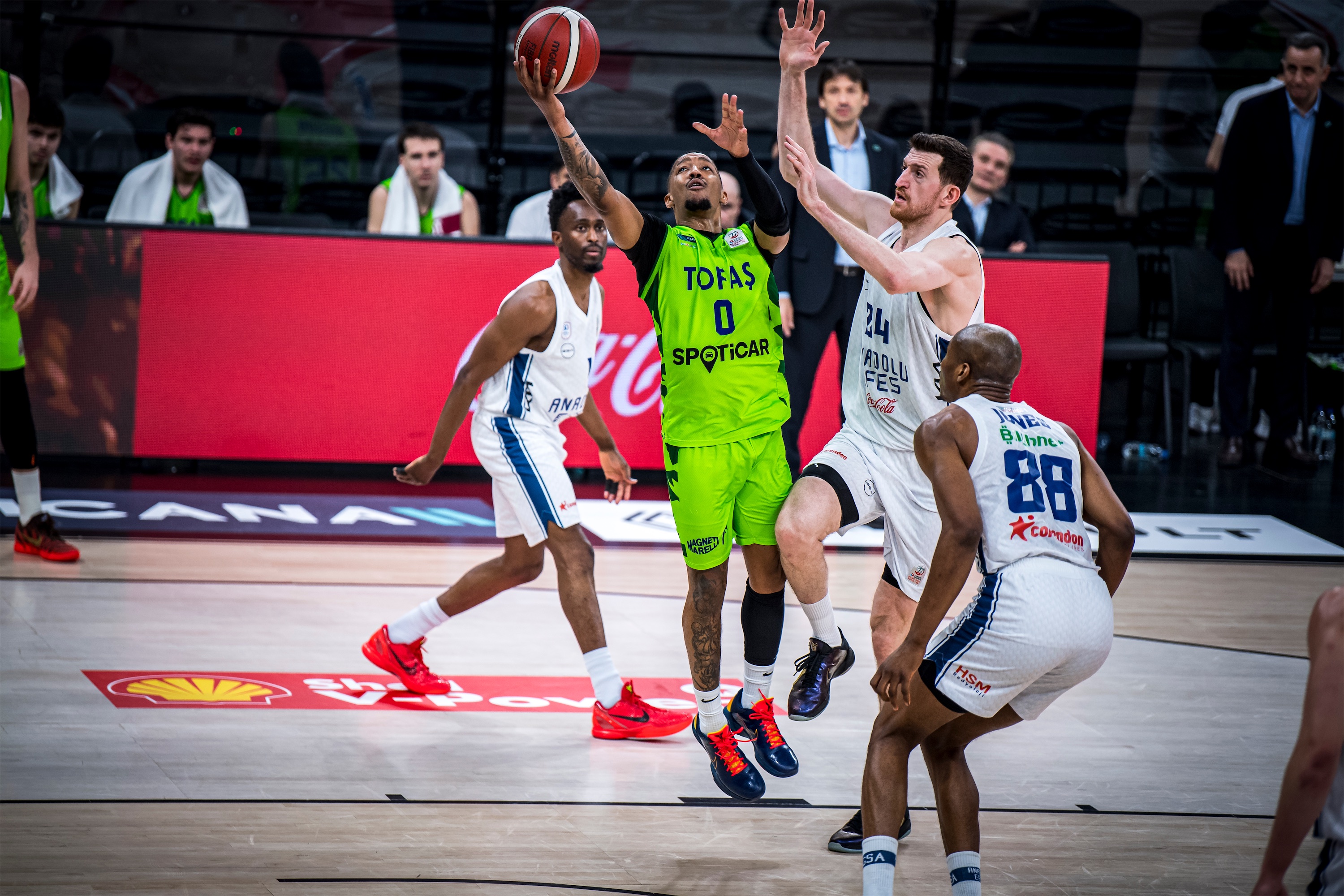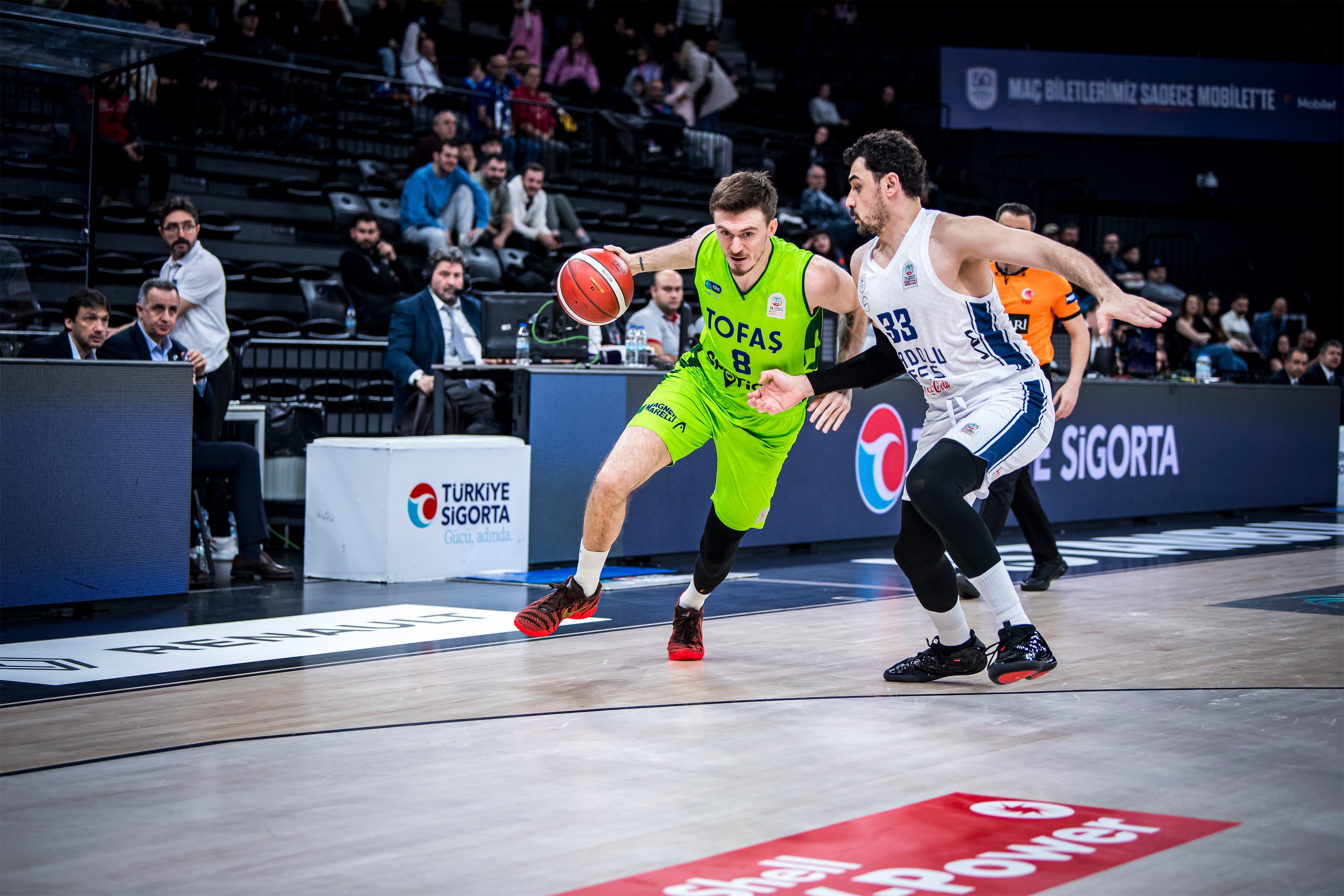 Türkiye Sigorta Basketbol Süper Ligi 24. haftasında TOFAŞ, Anadolu Efes’e konuk oldu. Turkcell Basketbol Gelişim Merkezi’nde oynanan mücadeleye Alex Perez, Hugo Besson, Tolga Geçim, Sadık Emir Kabaca, Marek Blazevic beşiyle başlayan Mavi Yeşilliler, ilk basketini Hugo Besson’un üçlüğüyle buldu. Alex Perez ve Marek Blazevic'in sayılarıyla 4. dakikayı 8-9 önde geçen Bursa ekibi, 5. dakikada televizyon molasına 14-9 geride girerken, mola dönüşü Marek Blazevic ve Sadık Kabaca’nın basketleriyle skoru 14-14 eşitleyen konuk takım, Marek Blazevic, Jordan Floyd, Tolga Geçim ve Furkan Korkmaz’ın sayılarıyla ilk çeyreği 21-21 beraberlikle kapattı.