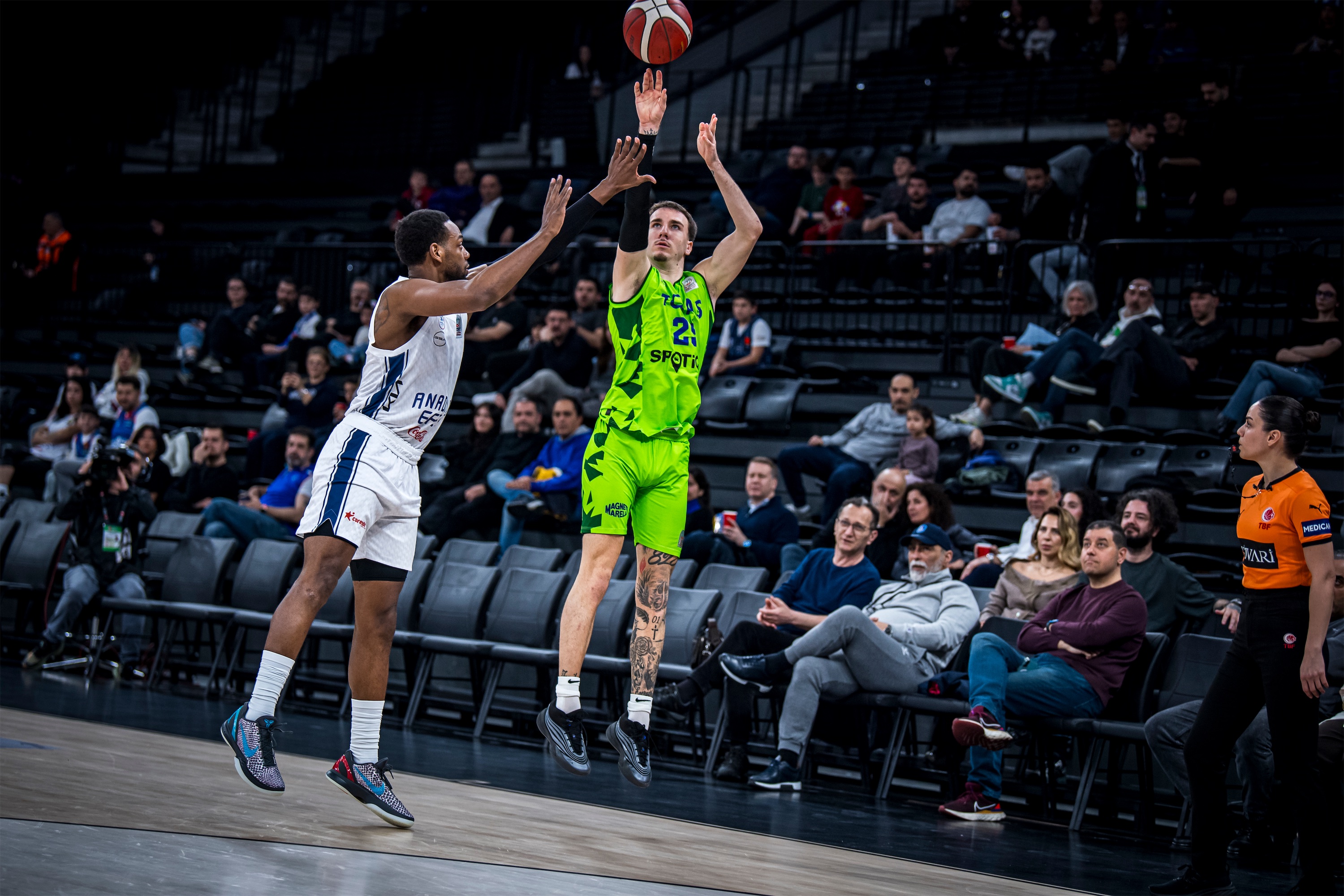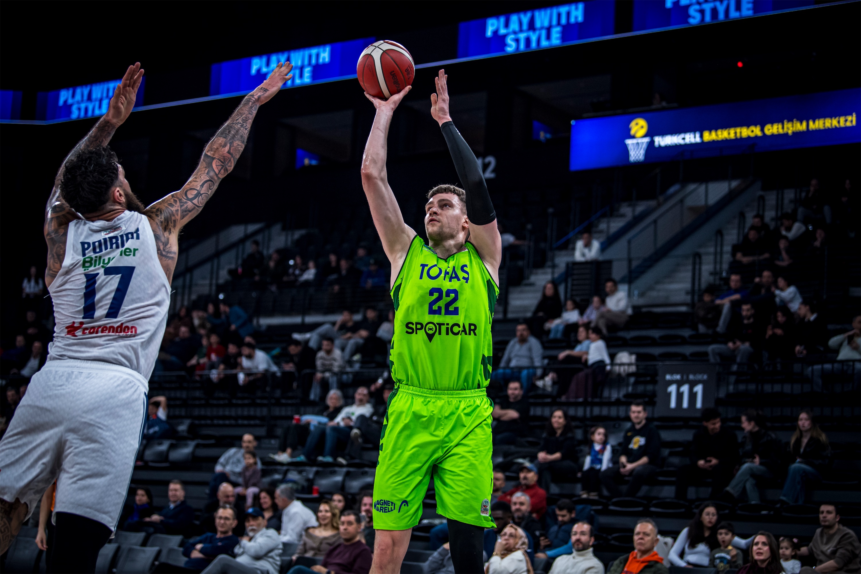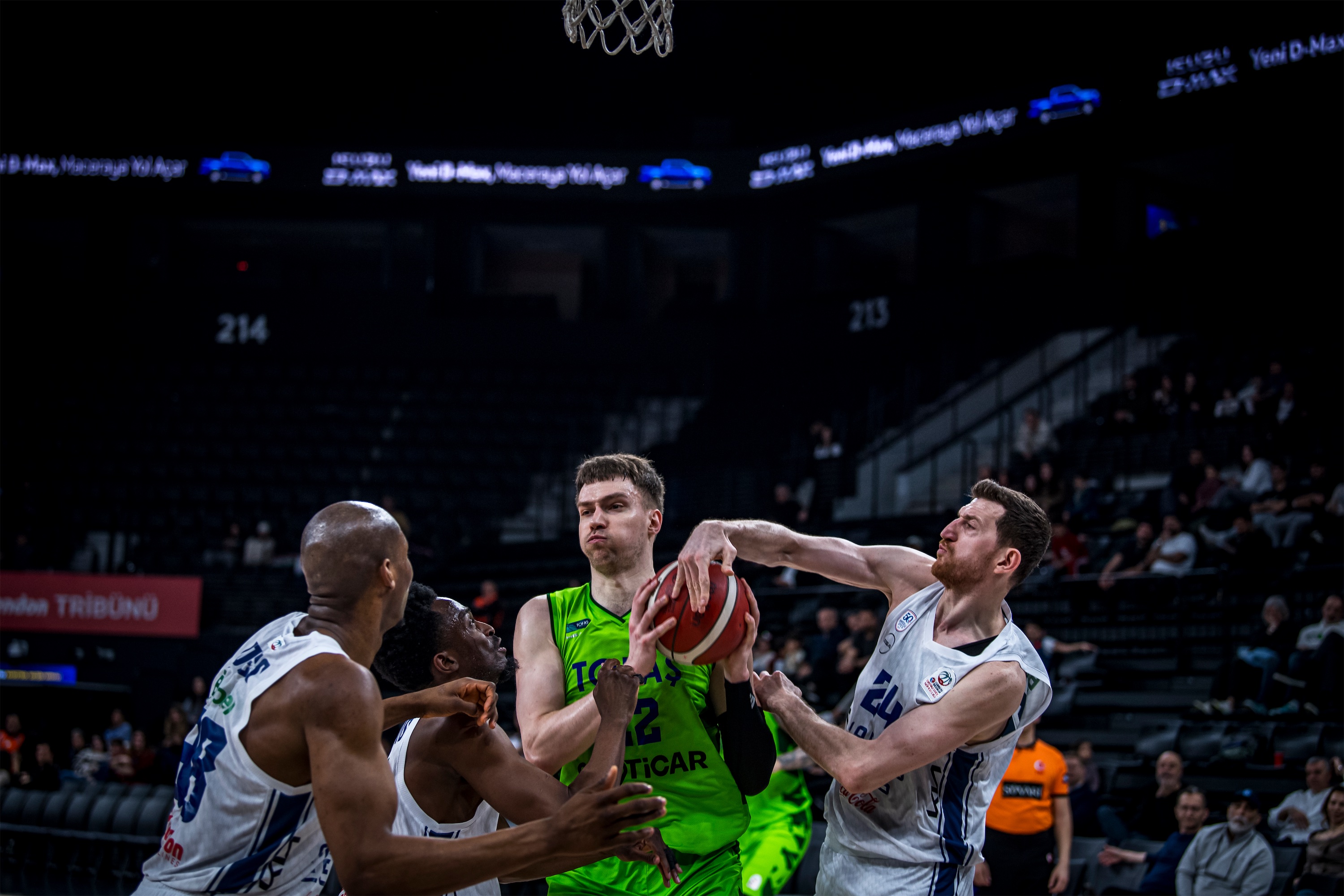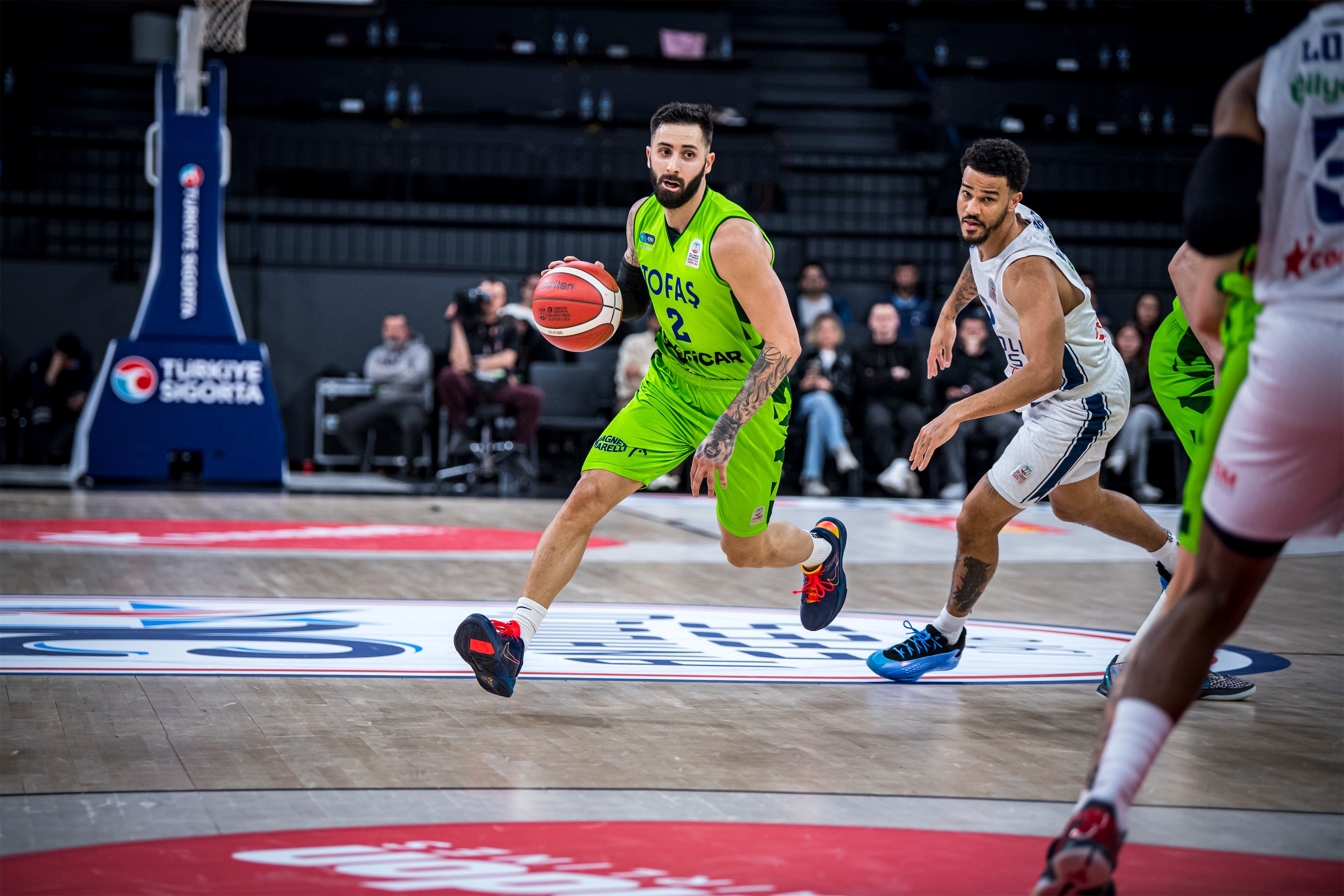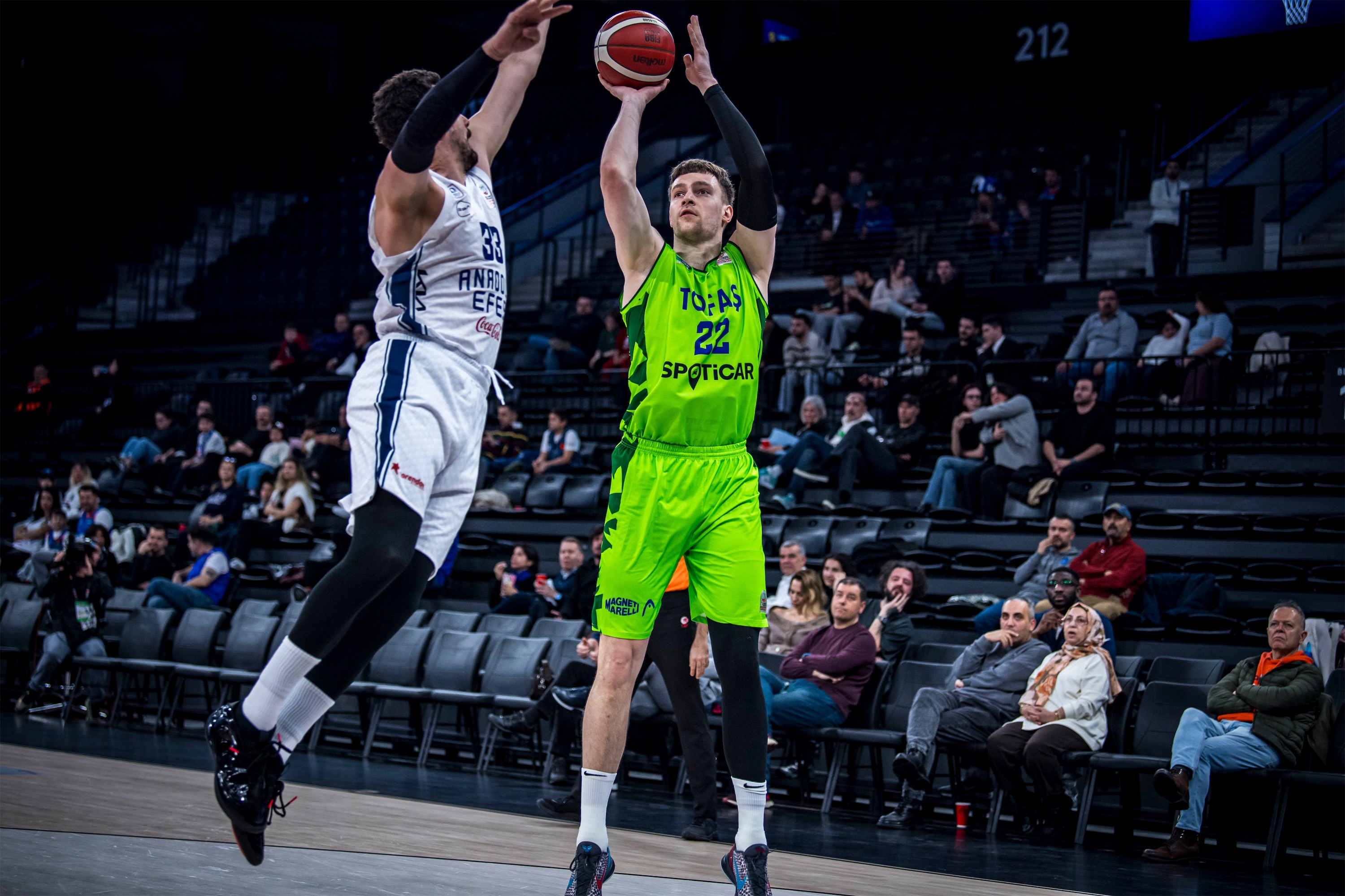 Türkiye Sigorta Basketbol Süper Ligi 24. haftasında TOFAŞ, Anadolu Efes’e konuk oldu. Turkcell Basketbol Gelişim Merkezi’nde oynanan mücadeleye Alex Perez, Hugo Besson, Tolga Geçim, Sadık Emir Kabaca, Marek Blazevic beşiyle başlayan Mavi Yeşilliler, ilk basketini Hugo Besson’un üçlüğüyle buldu. Alex Perez ve Marek Blazevic'in sayılarıyla 4. dakikayı 8-9 önde geçen Bursa ekibi, 5. dakikada televizyon molasına 14-9 geride girerken, mola dönüşü Marek Blazevic ve Sadık Kabaca’nın basketleriyle skoru 14-14 eşitleyen konuk takım, Marek Blazevic, Jordan Floyd, Tolga Geçim ve Furkan Korkmaz’ın sayılarıyla ilk çeyreği 21-21 beraberlikle kapattı.